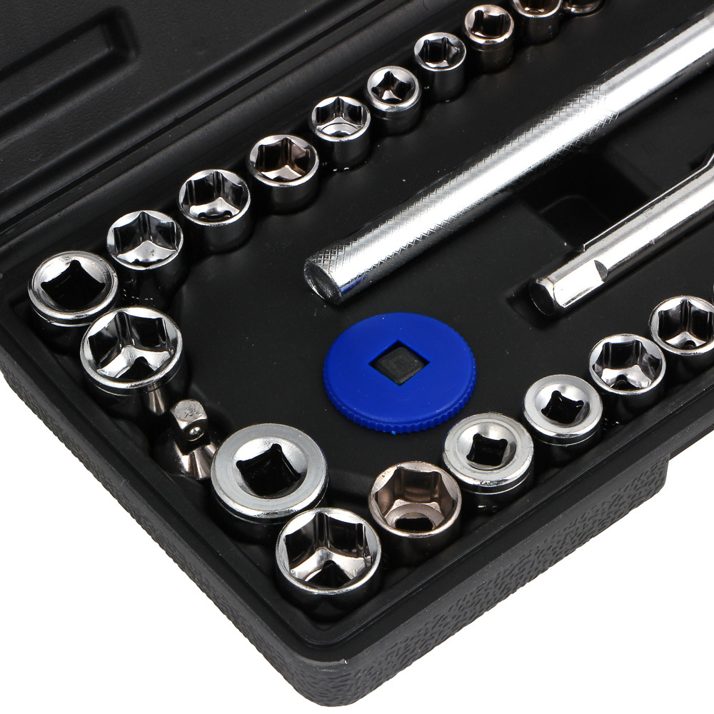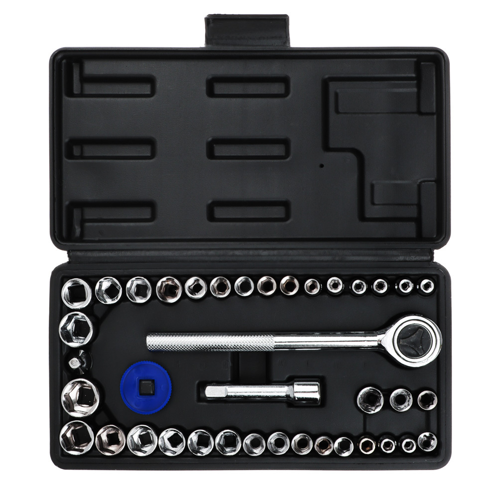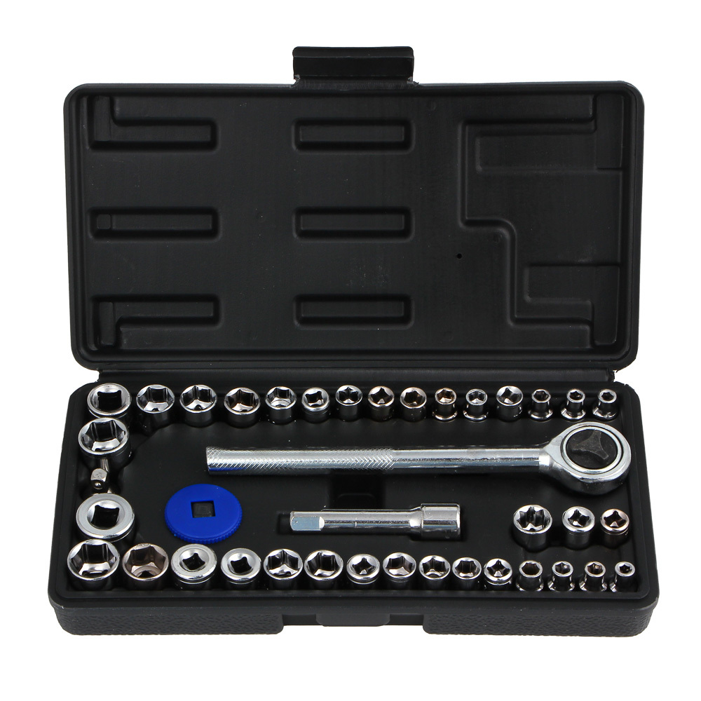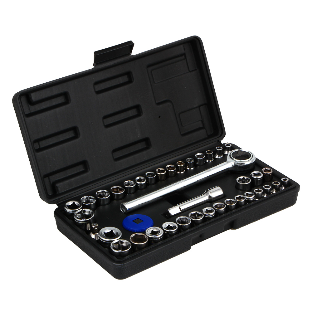 Все предметы этого набора изготовлены из высококачественной хромованадиевой стали с хромированным покрытием. Набор комплектуется прочным кейсом для легкой переноски и удобного использования. Набор включает в себя широкий спектр головок, которые можно использовать для автомобилей, велосипедов и бытовой техники.