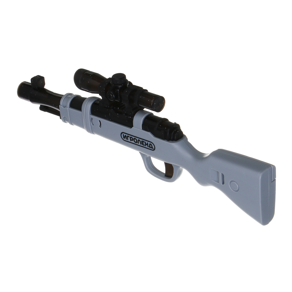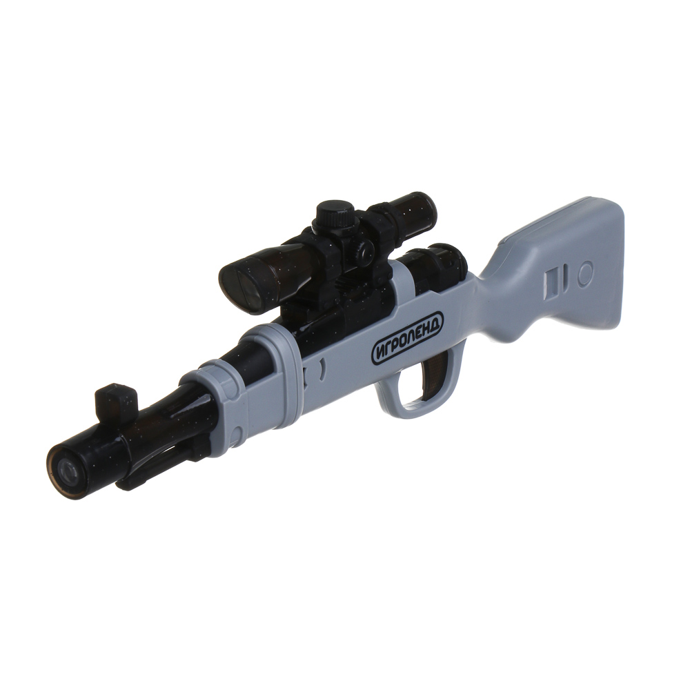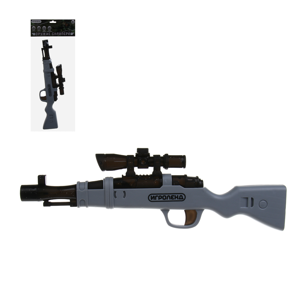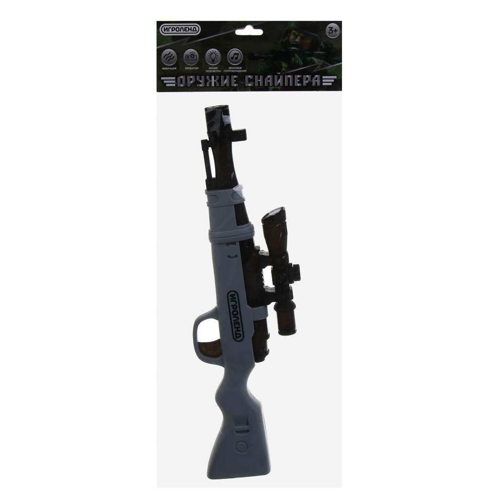 Оружие снайпера от ИГРОЛЕНД – это настоящий подарок мечты, который ребенок не захочет выпускать из рук. Большая снайперская винтовка с прицелом имеет реалистичное исполнение, высокую детализацию и выполнена из качественных прочных материалов. Дополнительно предусмотрен проектор и звуковые, а также световые спецэффекты и вибрация во время стрельбы. Винтовка легкая, удобно ложится в руки, устойчива к механическим воздействиям. Для работы звука и света необходимы 3 батарейки АА-типа.