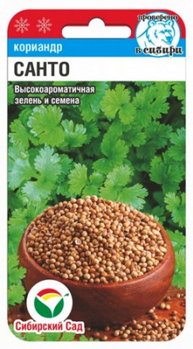 "Высокоароматичная, зелень и семена. Используется в качестве салатной зелени (листья, молодые стебли) и пряной приправы (сушеные листья, зрелые семена). Растение высотой 50-60 см, хорошо облиственное. Розетка листьев полуприподнятая. Лист зеленый, рассеченный с зубчатым краем, гладкий, с нежной структурой тканей листа. Масса одного растения 25-35 г. Семена растения входят в состав различных пряно-ароматических смесей. Благородный пряный аромат и едва ощутимый пикантный вкус кориандра, придает изюминку кулинарным блюдам и консервации. "