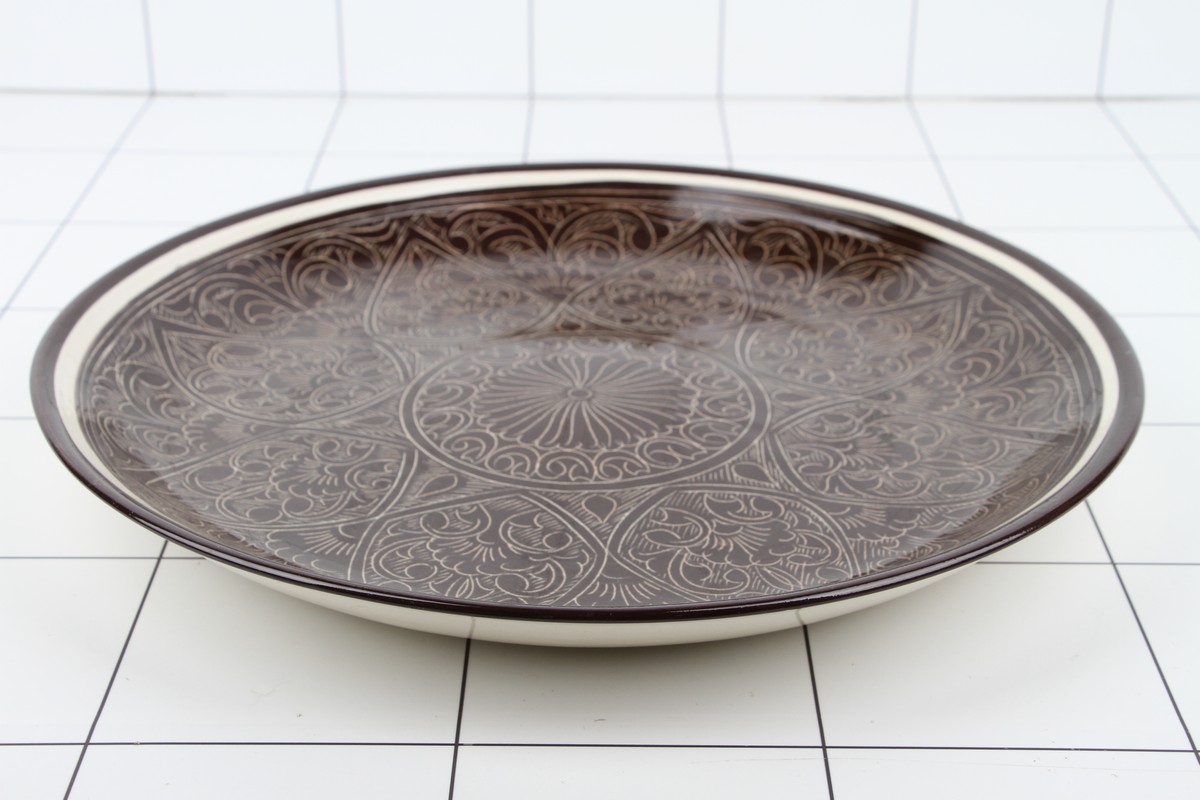 Откройте для себя шедевр узбекской керамики с блюдом Ляган из серии "Тилма". Изготовленное в Узбекистане, это блюдо диаметром 38см идеально подходит для сервировки разнообразных блюд. Его коричневый цвет и традиционный дизайн добавят изысканности и национального колорита на ваш стол. Будь то праздничный ужин или обед в кругу семьи, керамическое блюдо Ляган станет центральным элементом сервировки, подчеркивая вкус и стиль хозяина.