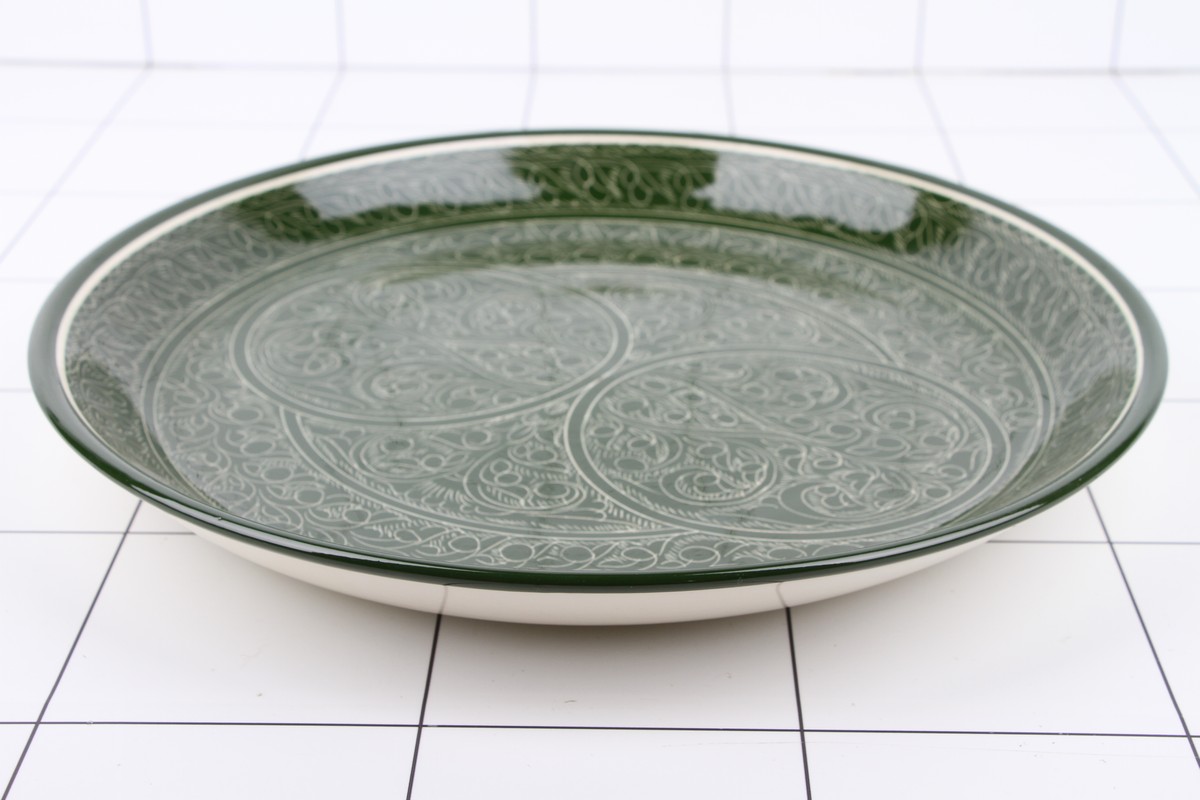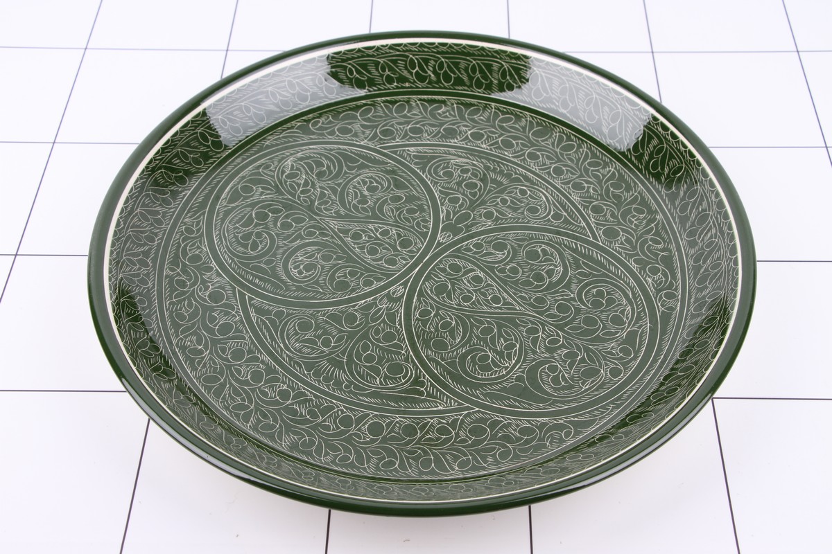 Откройте для себя шедевр узбекской кулинарии с блюдом Ляган из серии "Тилма"! Это настоящее произведение искусства диаметром 38 см, изготовленное из высококачественной риштанской керамики, славящейся своей прочностью и уникальностью. Завораживающий зеленый цвет и традиционные узоры делают его не только функциональным предметом для сервировки ваших кулинарных шедевров, но и изысканным элементом декора. Произведено в УЗБЕКИСТАНЕ. Подарите своему столу кусочек узбекской культуры с этим эксклюзивным блюдом!