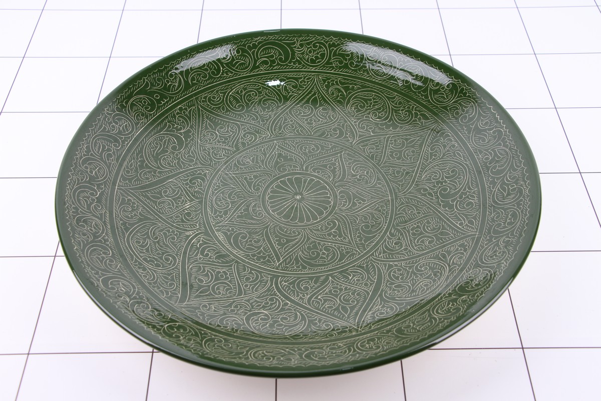 Откройте для себя уникальность узбекской культуры с блюдом Ляган из серии "Тилма". Этот шедевр, выполненный из высококачественной риштанской керамики, произведен в Узбекистане, земле с богатым наследием. Диаметром 42 см, он идеально подходит для сервировки различных блюд, добавляя изысканности и оригинальности вашему столу. Зеленый цвет, символизирующий природу и гармонию, наполнит ваш дом теплом и уютом. Создайте неповторимую атмосферу на каждом застолье с этим изысканным произведением искусства.