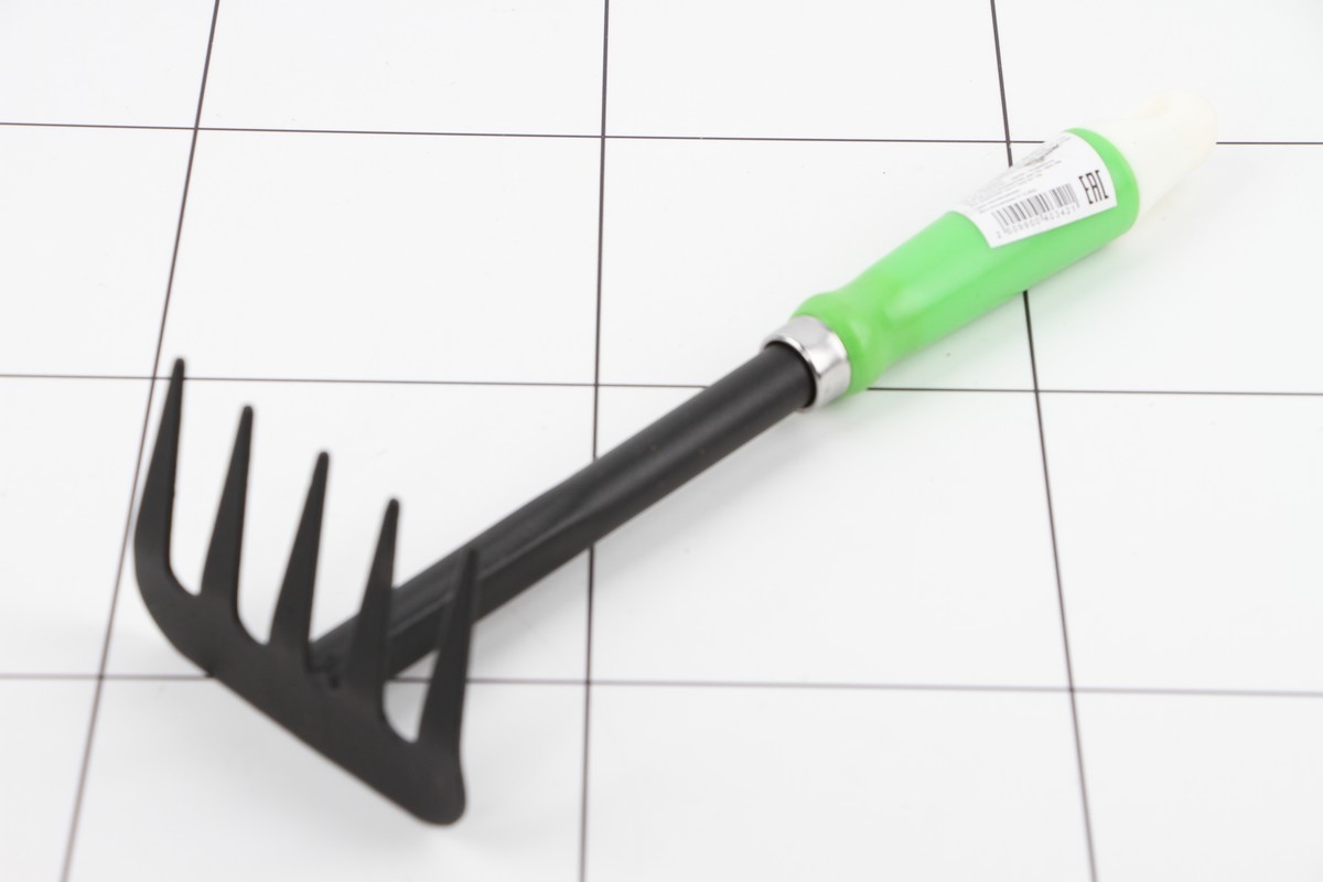 Грабли это многофункциональный помощник для сада и дачи. Такой инструмент отлично подойдёт для рыхления почвы — необходимого для правильного роста и развития растений процесса. Также с помощью данной модели удобно убирать сорняки и прочий органический мусор. Приспособление без труда разбивает большие комки и извлекает оставшиеся корни. Вы оцените эргономичный дизайн изделия, рукоятка которого выполнена из пластика. Размеры: 30 см. Материал: металл, пластик.