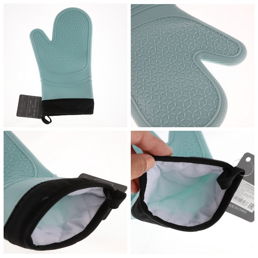 УНИВЕРСАЛЬНЫЙ РАЗМЕР-Для женщин и мужчин, подходит на правуб и левую руку ПРОТИВОСКОЛЬЗЯЩИЙ РЕЛЬЕФ-Предметы не выскользнут из рук ЖАРОПРОЧНЫЙ СИЛИКОН-Выдерживает температуру -40-230С ПЕТЕЛЬКА ДЛЯ ХРАНЕНИЯ-Удобно повесить на крючок или хранить в ящике стола