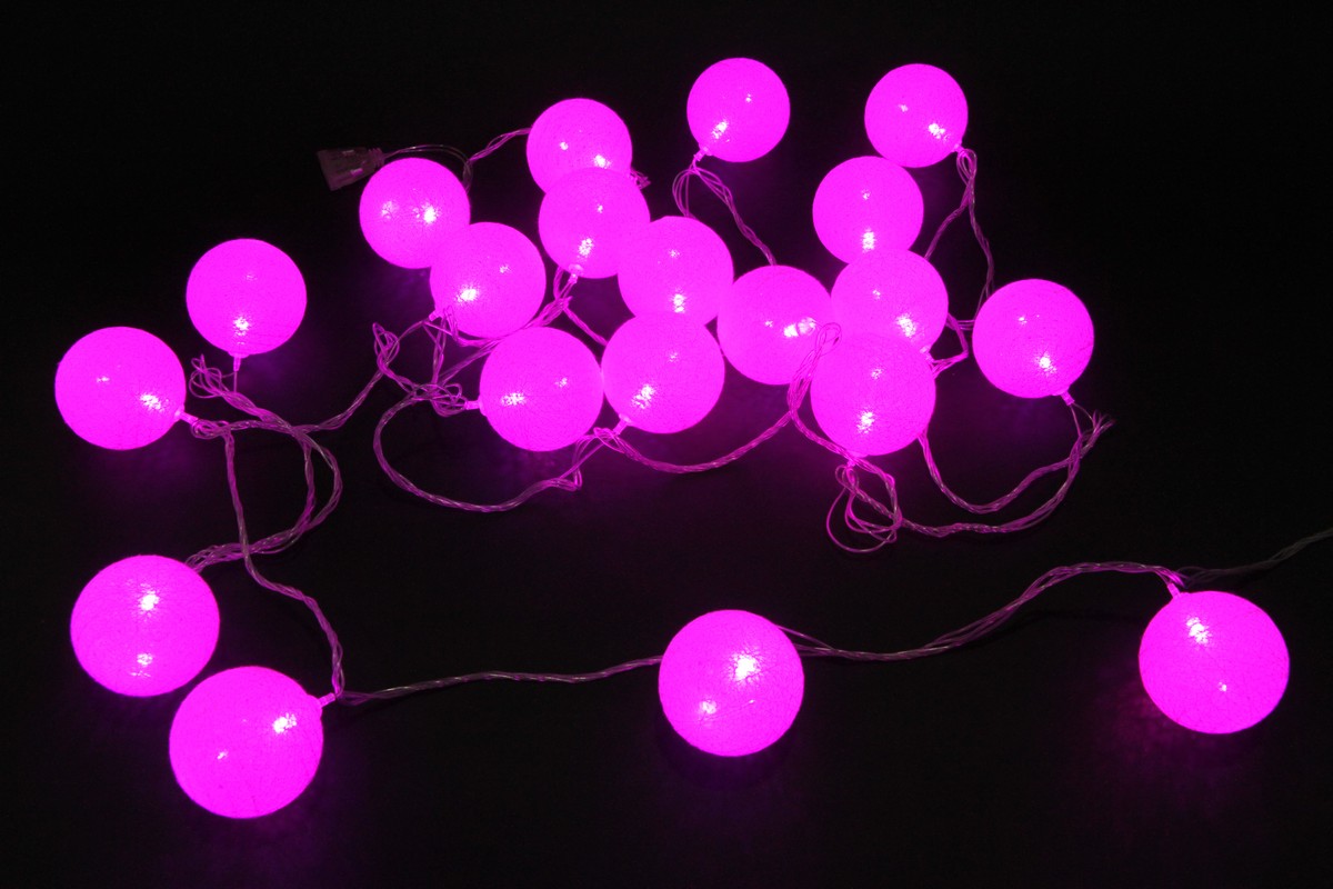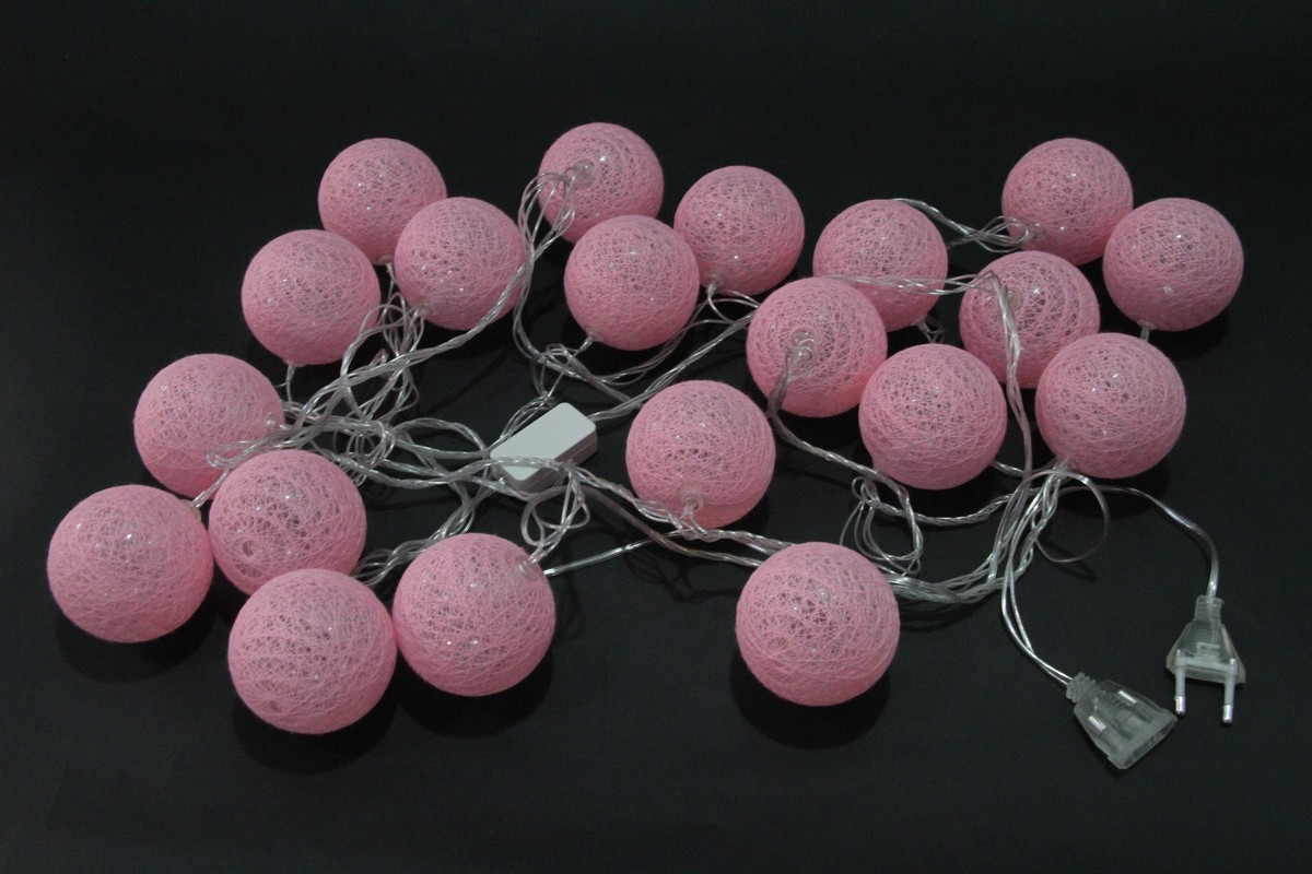 Гирлянда электрическая LED 20 Шаров 4м. Розовая соединяемая, 220В