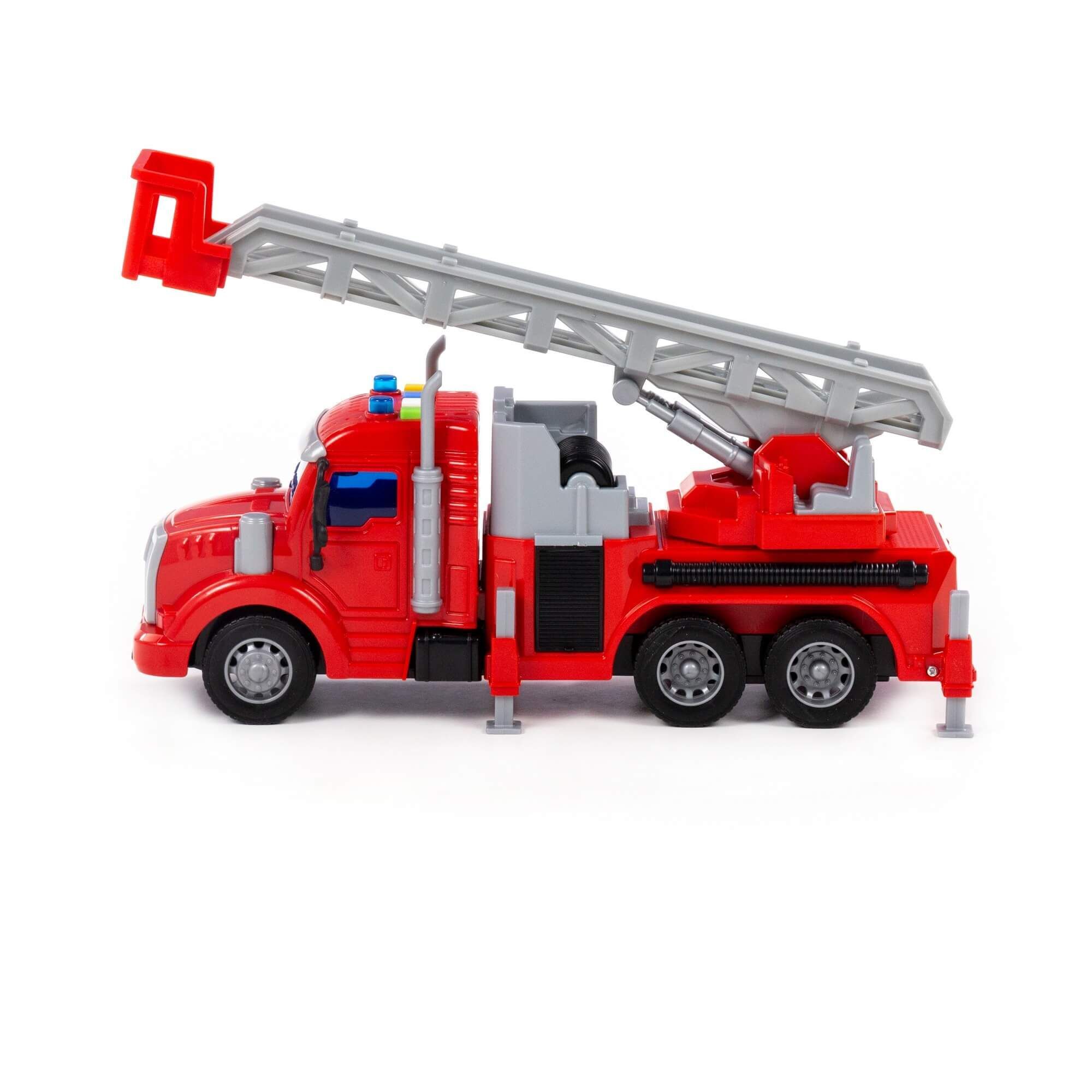 Автомобиль-пожарный инерционный «Профи» от фабрики «Полесье» - это качественная реалистичная игрушка, конструкция которой полностью повторяет дизайн настоящей техники. Спецмашина оснащена выдвижной пожарной лестницей, которая позволит придумывать различные сценарии игры. Имеет три пары резиновых колес на металлических осях. На кабине авто имеется 4 кнопки управления звуковыми и световыми эффектами.