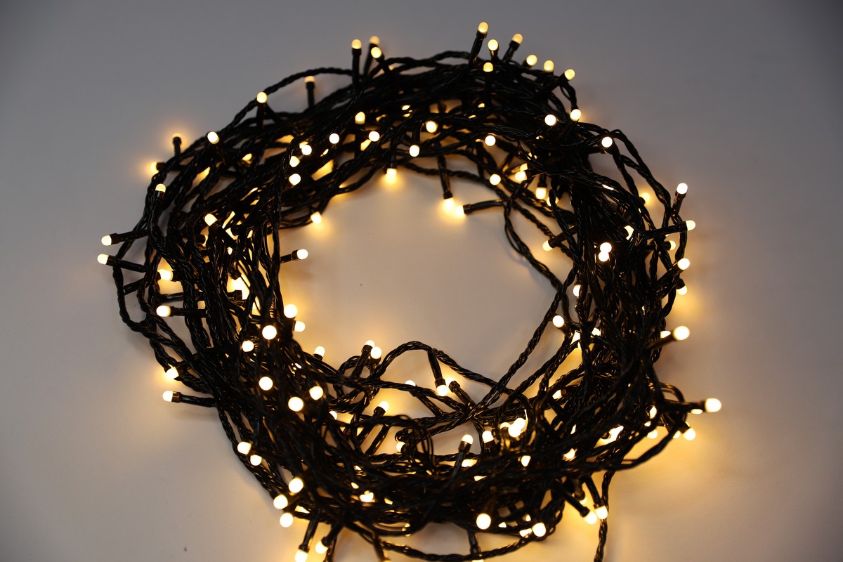 Очаровательная гирлянда на черном проводе, оборудованная 500 LED лампами, представляет собой идеальное дополнение к вашему домашнему уюту. Лампы матового бело-желтого цвета создают теплую и пригласительную атмосферу. Длина гирлянды 22 метра позволяет украсить большое пространство, а возможность соединения предоставляет неограниченные варианты декорирования. Работает от сети 220В, обладает контролем яркости. Идеально подойдет для создания праздничного настроения внутри дома. Создайте свой собственный световой рай с этой магической гирляндой!