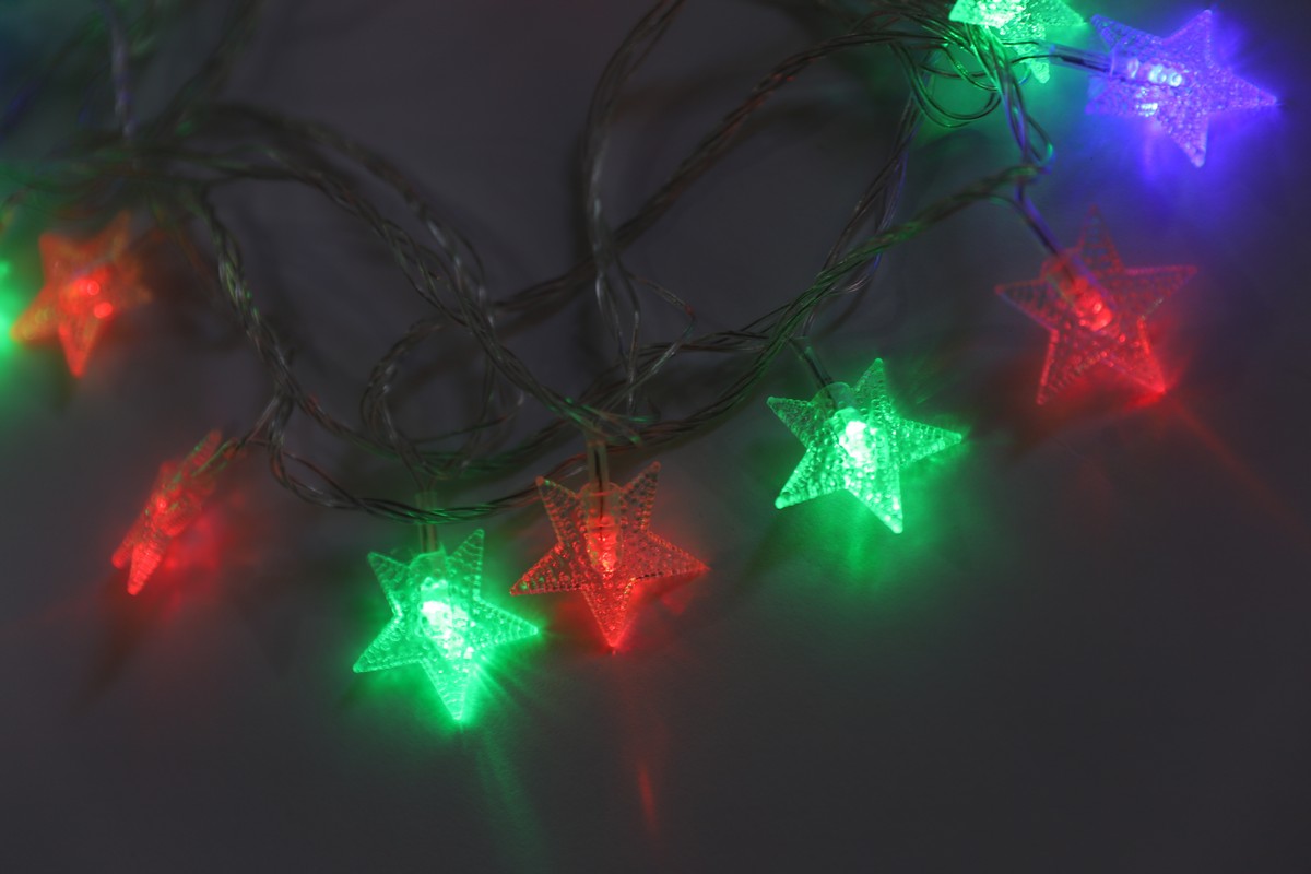 Гирлянда электрическая LED 40L белый провод, звезды цветная 4м лента 08-6 соединяемая, 220В