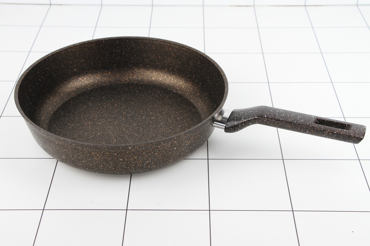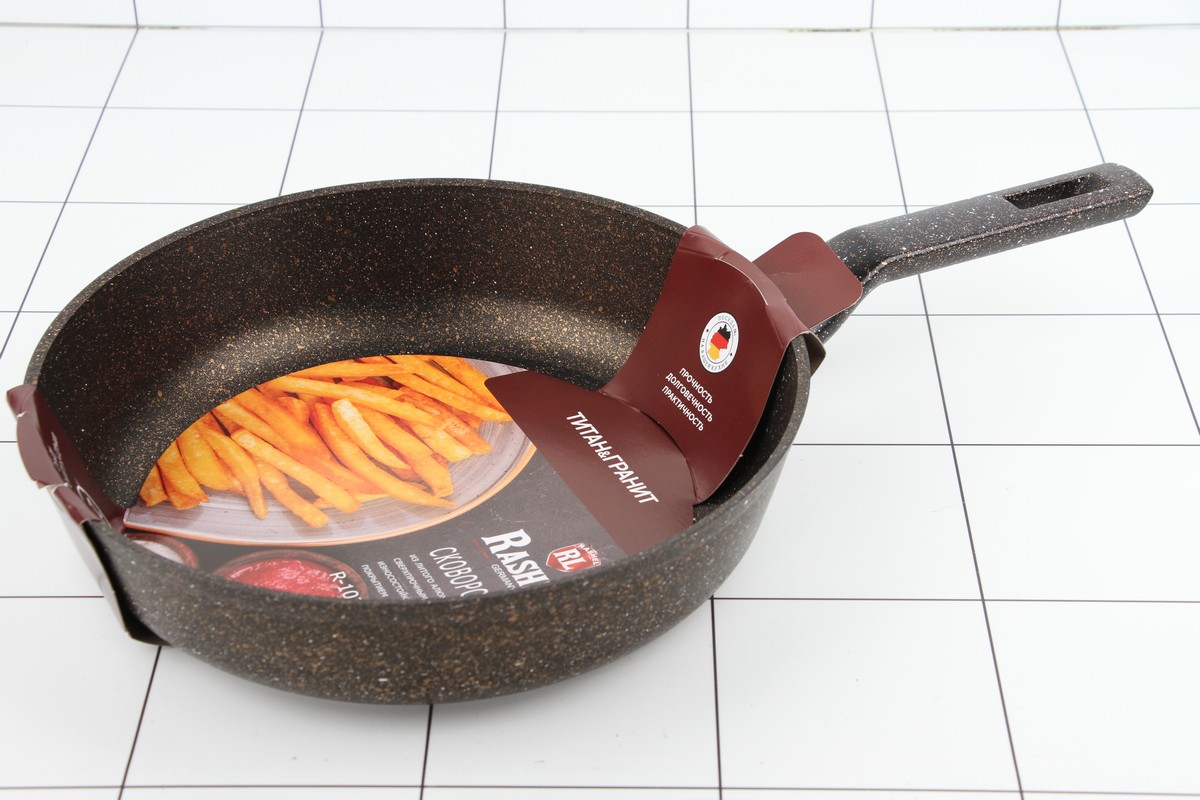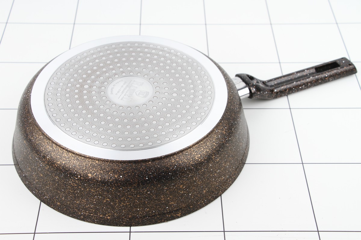 Сковорода а/п литая 28 см с индукционным дном (цвет: бронзовый) - Подходит для всех видов плит; - Высота борта h=7,1 см, d=28 см, толщина стенок 4 мм, толщина дна 6 мм; - Бакелитовая ручка; - Внутреннее и вневшнее сверхпрочное, износостойкое, гранитное антипригарное покрытие"ТИТАН&ГРАНИТ".