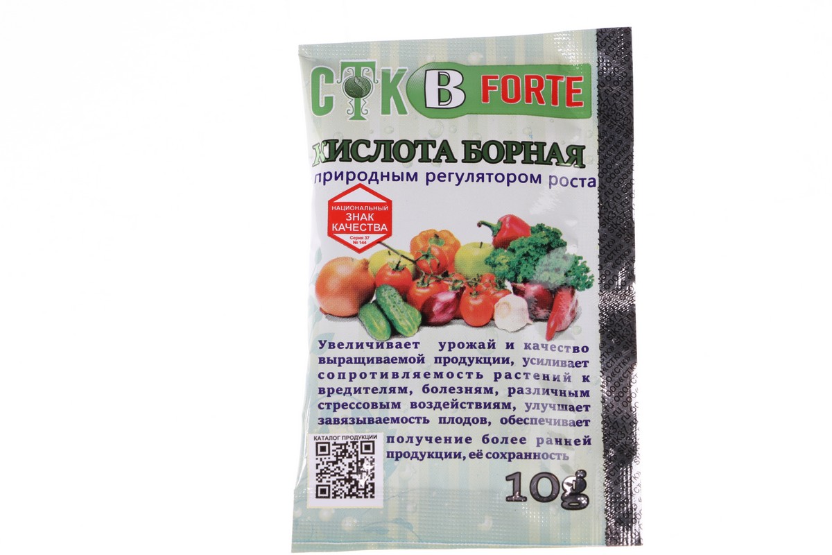 Микроэлементное удобрение с добавлением стимулятора роста растений. Питает растения бором, увеличивает урожайность и улучшает качество продукции. Под воздействием стимулятора роста значительно увеличивается количество бутонов, цветов, плодов, увеличивается скорость роста и высота растения, усиливается образование цветоносов и цветение. 1 пакет на 100 кв.м.