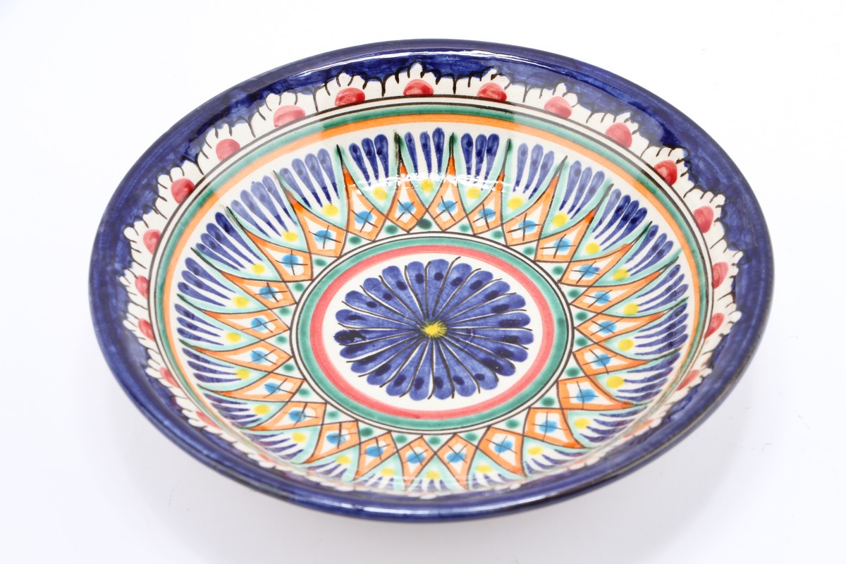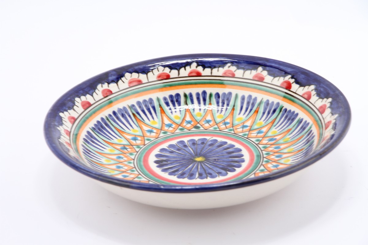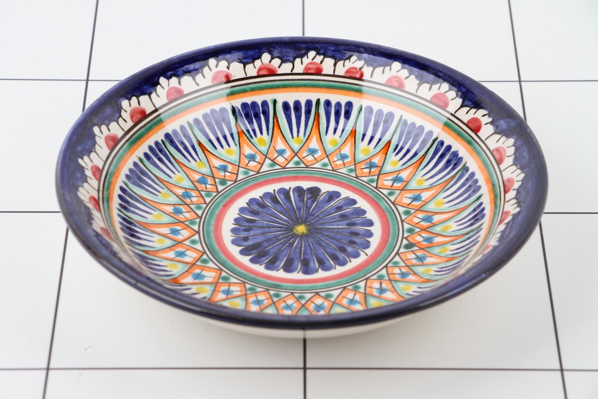 Откройте для себя великолепие узбекской культуры с нашей керамической тарелкой из серии "Мехроб". Изготовленная в Узбекистане, эта тарелка является настоящим произведением искусства. С диаметром 19 см и окутанная в соблазнительный синий цвет, она добавит изысканности и традиционного шарма на ваш стол. Прочная и красивая, подходит как для ежедневного использования, так и для особых случаев. Погрузитесь в мир узоров и цветов востока с нашей тарелкой "Мехроб".