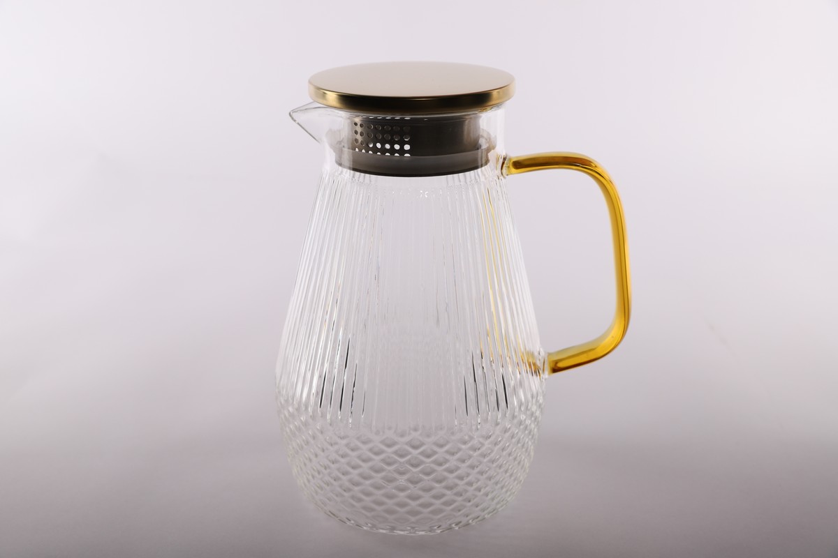 Удобный функциональный кувшин стеклянный для холодных и горячих напитков, объемом 2.0 литра. Корпус чайника-кувшина сделан из термостойкого боросиликатного стекла. Графин стеклянный для воды можно использовать, как для горячих напитков (чай, глинтвейн), так и для холодных напитков (лимонад, сок). От перепада температур чайник заварочный стеклянный не треснет и не расколется. Крышка кувшина выполнена из пищевой нержавеющей стали. В верхней части кувшина есть фильтр, выполненный из пищевого силикона, который поможет удержать от попадания в бокал, например, листья мяты из лимонада. Горлышко колбы у кувшина из стекла оптимально для загрузки кубиков льда и нарезанного лимона. Кувшин для воды стеклянный можно мыть в посудомоечной машине - боросиликатное стекло от этого не помутнеет и на нем не появятся царапины.