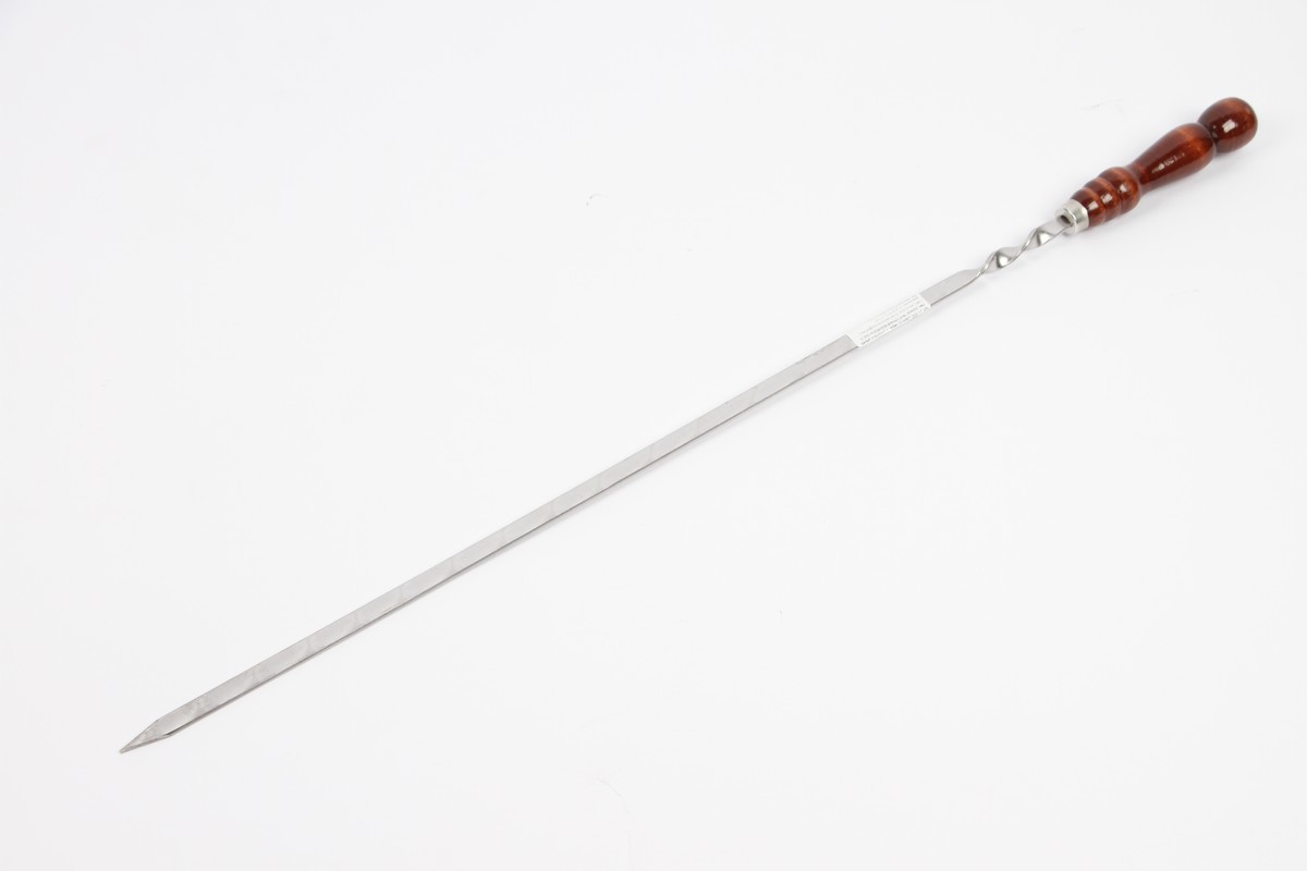 Шампур нерж., с узором и деревянной лакиров ручкой "ФИГУРНАЯ" с колпачком 830(600)х12х2,5