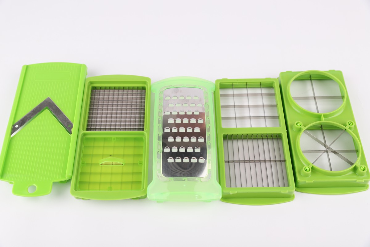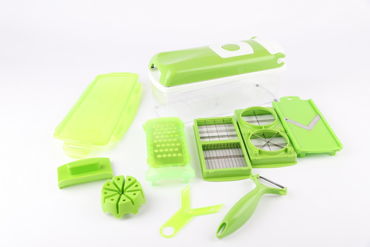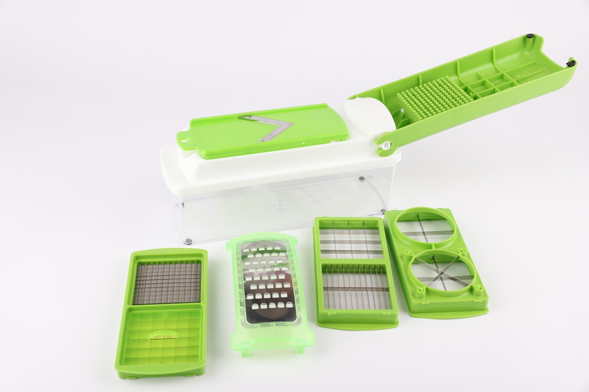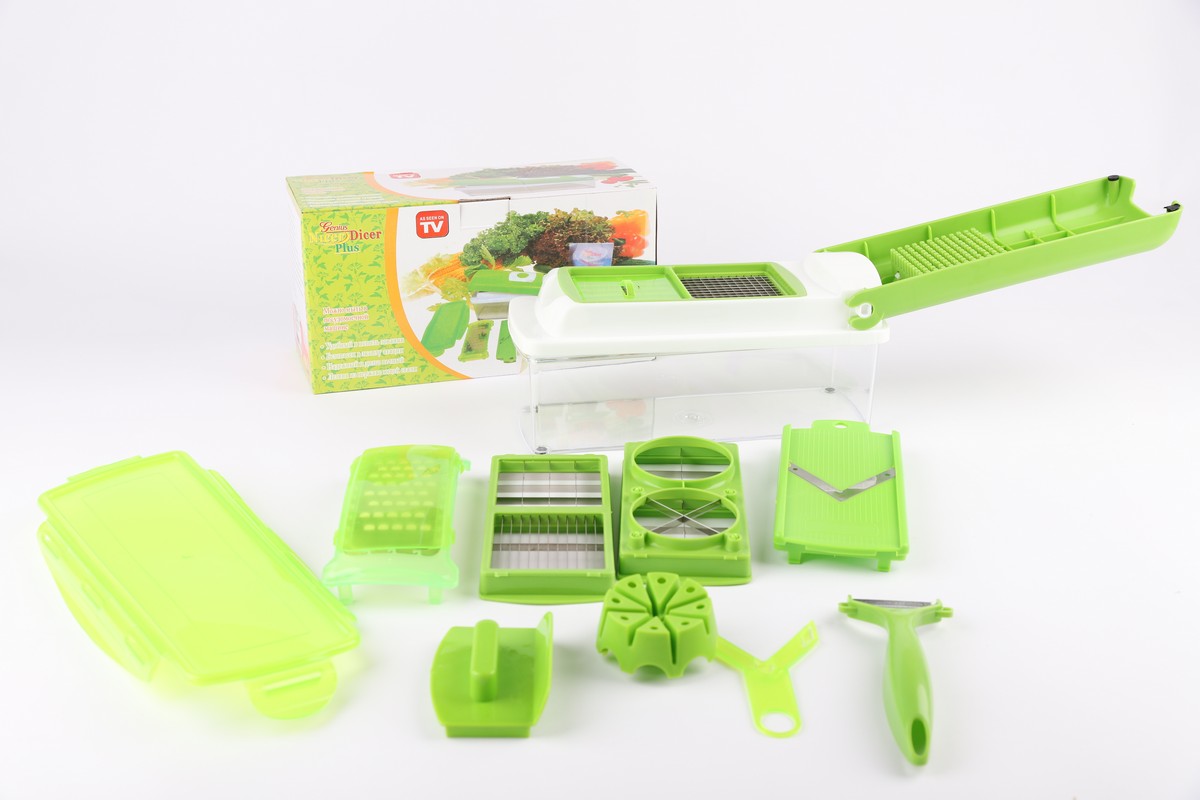 Универсальная терка-слайсер - незаменимый помощник на кухне. С ее помощью можно нашинковать овощи, фрукты или другие продукты разными способами. В комплекте - насадки для шинковки. Контейнер, в который попадают нарезанные продукты, оснащен резиновыми ножками, это предотвращает соскальзывание со стола во время работы. Для шинковки, овощ или фрукт закрепляется в специальном держателе, это делает работу с теркой максимально безопасной. Также в коплекте - нож для очистки овощей и фруктов. Рекомендации к использованию: - после использования промыть и высушить - хранить вне доступа от детей