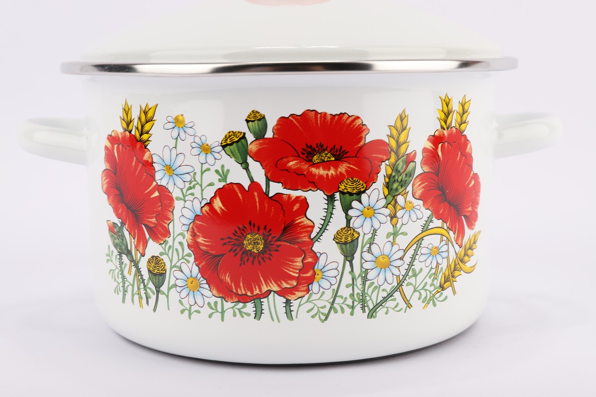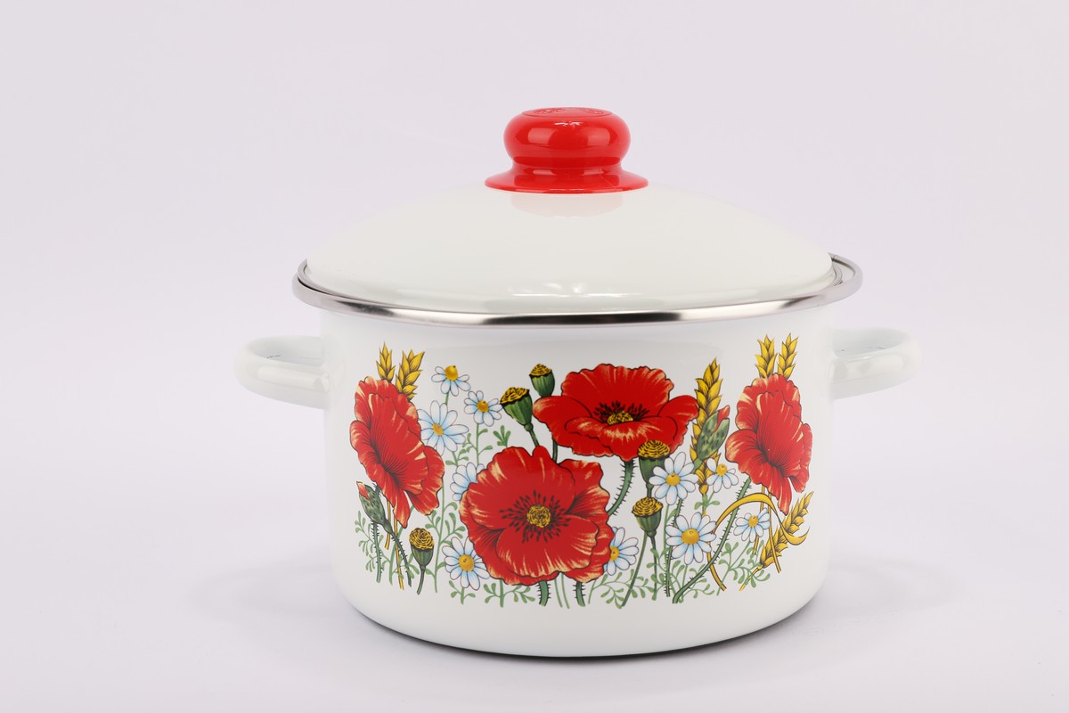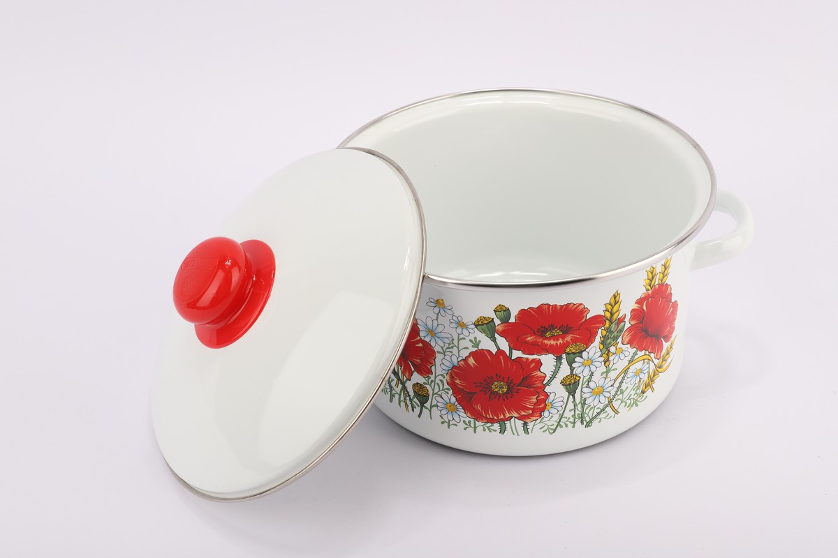 Эмалированная кастрюля отлично подходит для приготовления и хранения различных блюд. Традиционный инструмент пригодится дома и на даче. Особенности: крышка ускоряет приготовление пищи, внутренняя поверхность безопасна для продуктов питания, удобные ручки, приятный дизайн. Рекомендуется избегать использования высокоабразивных моющих средств и железных губок.