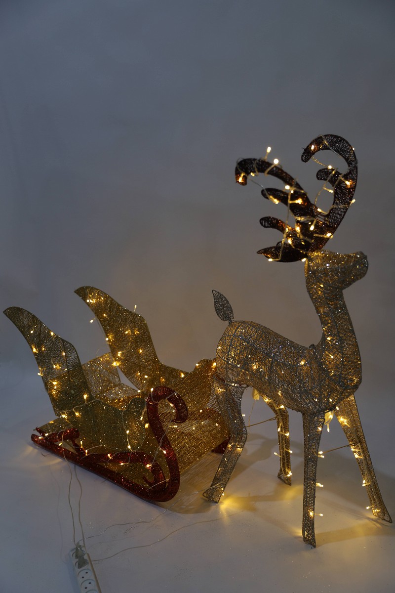 Эта красивая световая фигура северного оленя с санями станет прекрасным дополнением к вашему декору. Эта световая фигура привнесет праздничную атмосферу, что делает ее идеальным украшением для любого праздничного сезона. Стильные светящиеся фигуры для новогоднего оформления создают праздничное настроение, привлекают внимание и помогают создать совершенно новое восприятие пространства.