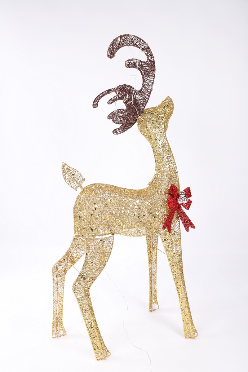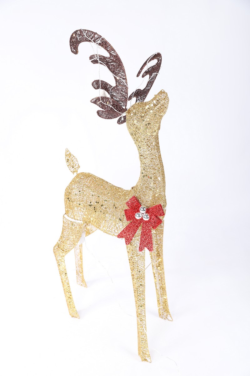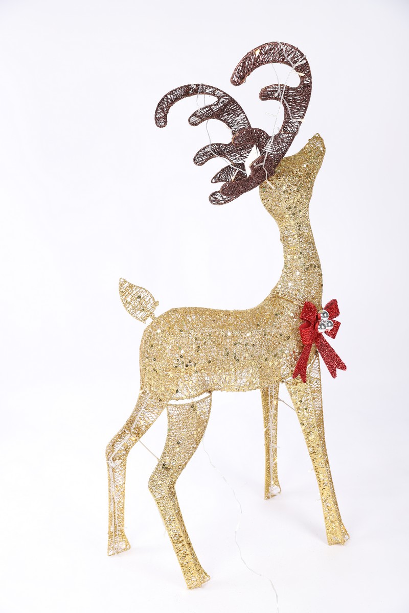 Светодиодные фигуры - это прекрасный вариант оформления к Новогодним праздникам и Рождеству, а также отличное украшение интерьера. Интерьерные каркасные светящиеся фигуры Оленей снабжены светодиодами, что превращает их из привычных в сказочные. Сегодня такие Светодиодные Олени довольно активно используются в качестве светового оформления различных кафе, торговых центров, магазинов, равно как и для создания новогоднего декора оформления в доме, офисе. Светящийся золотистый олень с LED лампами является отличным подарком на Новый год.