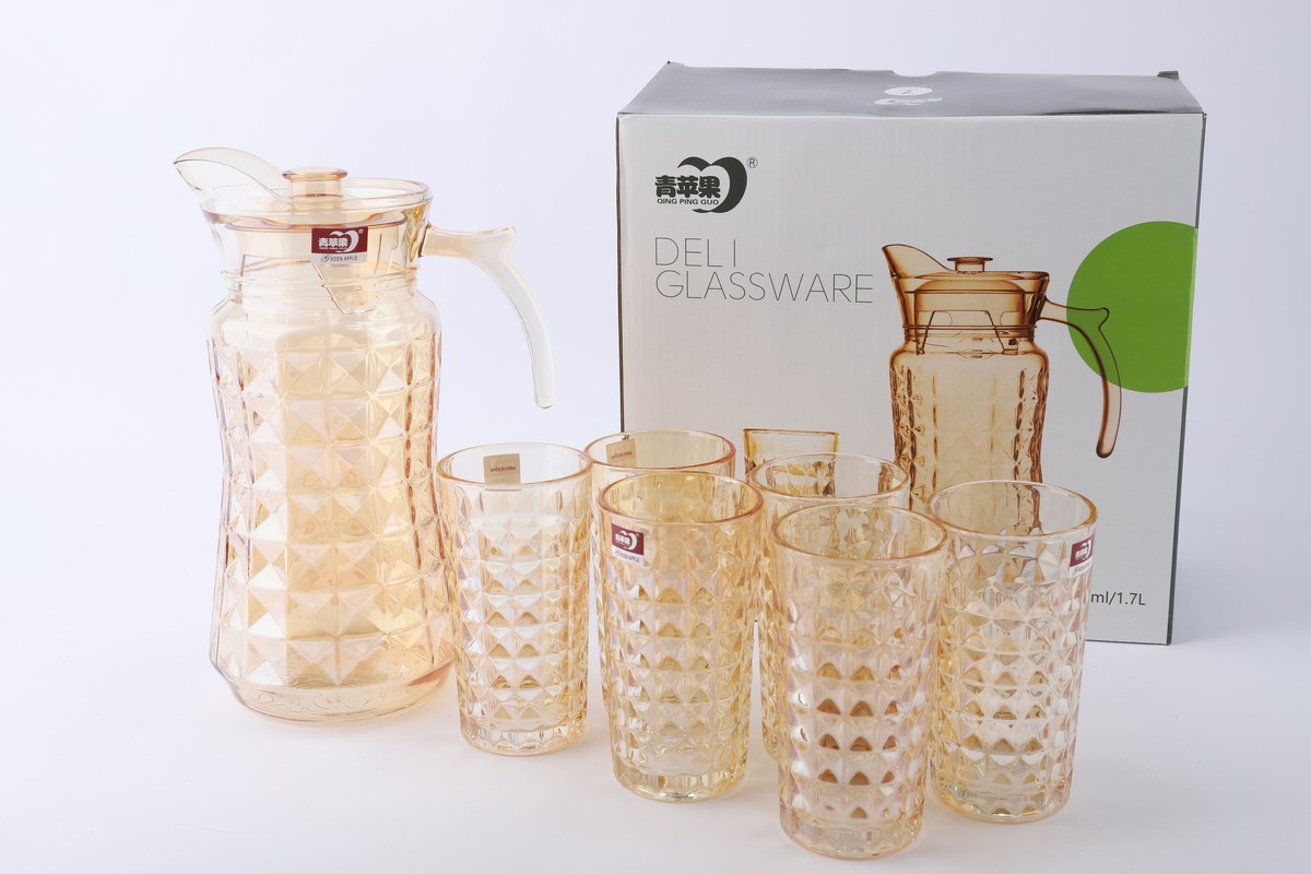 Оживите свои застолья с элегантным набором для напитков! В комплекте шикарный кувшин на 1700мл и 6 стаканов по 278мл, выполненные из прозрачного стекла высокого качества. Идеально подходит для подачи любимых соков, воды или коктейлей. Произведено в Китае, этот набор не только украсит ваш стол, но и подчеркнет ваш изысканный вкус. Код товара: YZH33/L7. Создайте неповторимую атмосферу уюта и гостеприимства с каждым глотком!