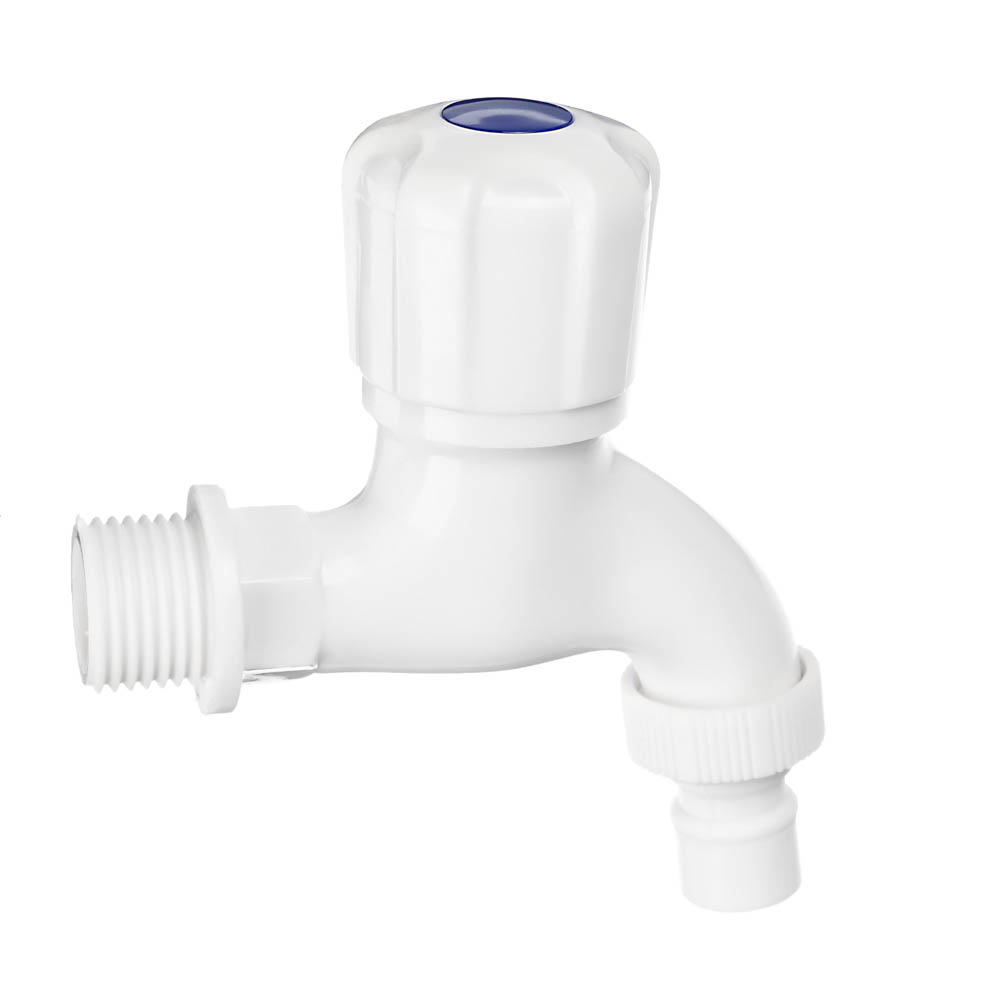 Водоразборный кран 1/2" (15 мм) белого цвета из полипропилена для холодной воды со штуцером предназначен для бытовых и хозяйственных нужд. Характеризуется высокой надежностью, не протекает, не подвержен гидроударам и не шумит. Выполнен из высокопрочного полипропилена, не ржавеет, поэтому будет работать безотказно на протяжении многих лет.
