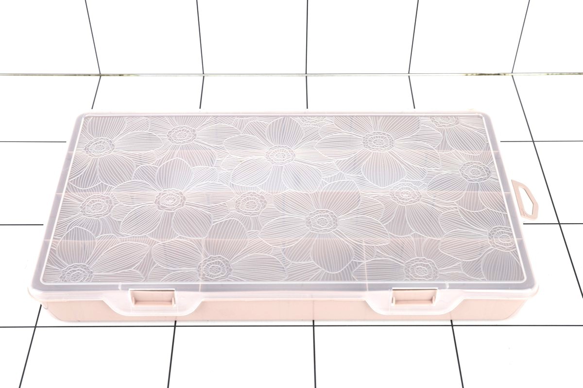 Fiori Orchid XL Органайзер для хранения мелочей с разделителями (35,5х21х4,2см) – эффективно и без излишних затрат поможет организовать хранение всех домашних мелочей, в одном стиле и в одном месте, чтобы ничего не потерялось. Для ниток и иголок, бижутерии и косметики, таблеток и товаров для творчества, для каждой домашней мелочи найдется свое место. Уникальный дизайн крышечки выделяет органайзер на фоне всевозможных аналогов – флористический тонкий фактурный рисунок на прозрачном корпусе не оставит равнодушной ни одну женщину.