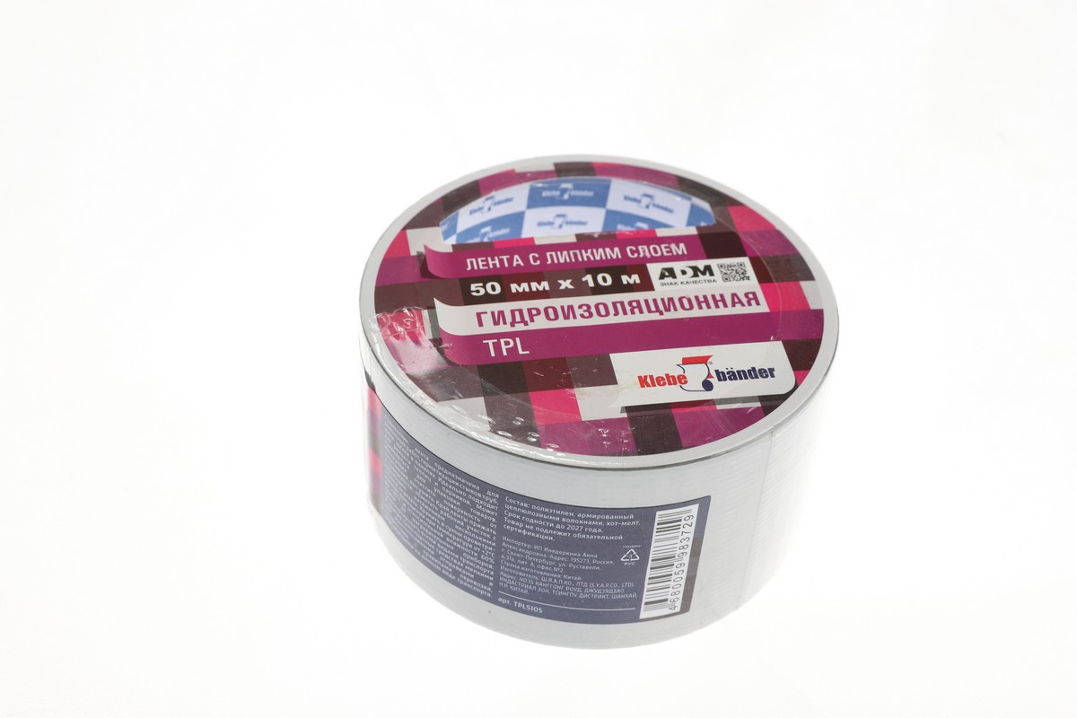 Гидроизоляционная лента Klebeb?nder или «сантехнический скотч» используется для герметизации швов и стыков труб, а также для временного устранения протечек. Основные преимущества ленты – ее высокая прочность и влагостойкость. Прочность ленты достигается за счет армирующих нитей. Влагостойкость обеспечивает полиэтиленовая основа. Кроме гидроизоляции, лента может использоваться для ремонта теплиц и парников, палаток, временной фиксации предметов и бытового ремонта.
