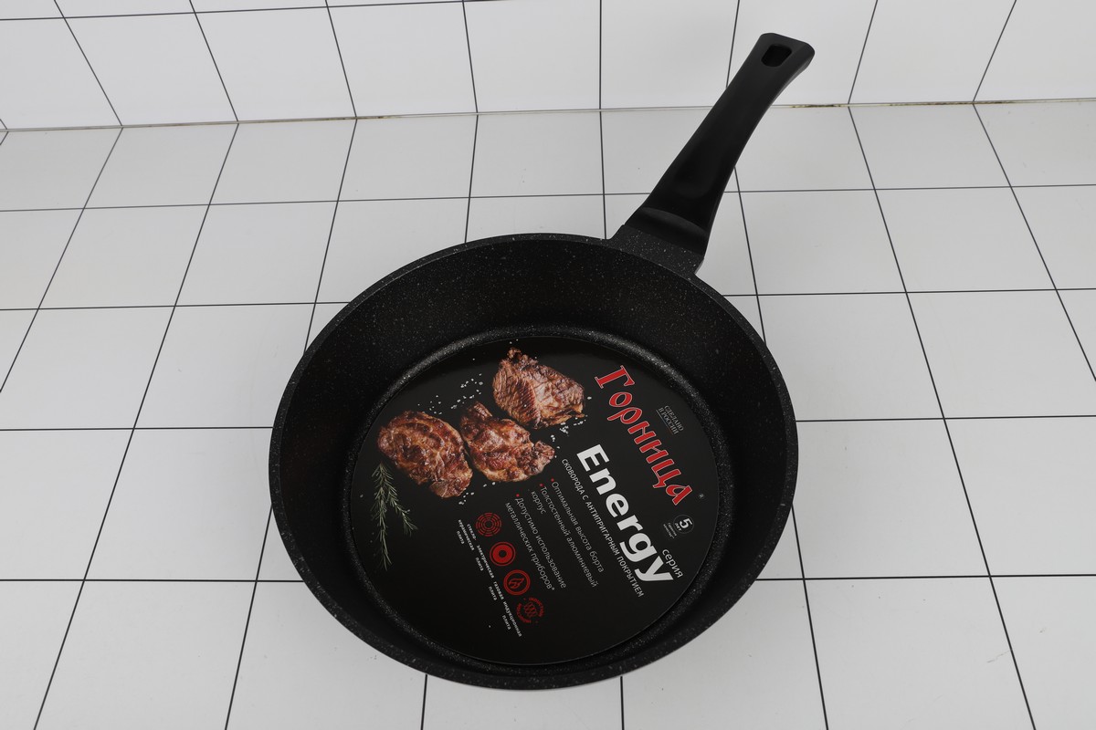 Литая алюминиевая сковорода с антипригарным покрытием «ENERGY Induction"– оригинальная посуда ТМ Горница, которая подходит для газовых, электрических, стеклокерамических и индукционных плит. Линейка сковород серии «ENERGY Induction» –это коллекция облегченных сковород с высокими бортами, предназначенными для использования на всех видах плит, включая индукционные. Прочный алюминиевый корпус обеспечивает равномерный нагрев всей поверхности посуды. Индукционное дно сокращает расход электроэнергии и время пребывания на кухне. Представлена в трех цветовых решениях: «ENERGY Gold Induction», «ENERGY Agate Induction», «ENERGY Bronze Induction». Антипригарная сковорода имеет толстые стенки и утолщенное дно, что способствует равномерному распределению тепла и создает благоприятные условия для качественного процесса готовки. Антипригарное покрытие на водной основе не содержит вредных химических соединений. Ручка для сковороды из бакелита не нагревается и не выскальзывает из рук.
