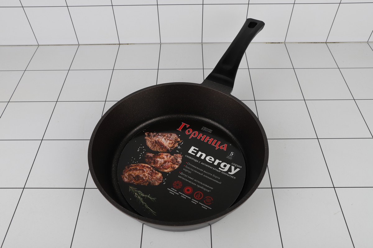 Литая алюминиевая сковорода с антипригарным покрытием «ENERGY Induction"– оригинальная посуда ТМ Горница, которая подходит для газовых, электрических, стеклокерамических и индукционных плит. Линейка сковород серии «ENERGY Induction» –это коллекция облегченных сковород с высокими бортами, предназначенными для использования на всех видах плит, включая индукционные. Прочный алюминиевый корпус обеспечивает равномерный нагрев всей поверхности посуды. Индукционное дно сокращает расход электроэнергии и время пребывания на кухне. Представлена в трех цветовых решениях: «ENERGY Gold Induction», «ENERGY Agate Induction», «ENERGY Bronze Induction». Антипригарная сковорода имеет толстые стенки и утолщенное дно, что способствует равномерному распределению тепла и создает благоприятные условия для качественного процесса готовки. Антипригарное покрытие на водной основе не содержит вредных химических соединений. Ручка для сковороды из бакелита не нагревается и не выскальзывает из рук.