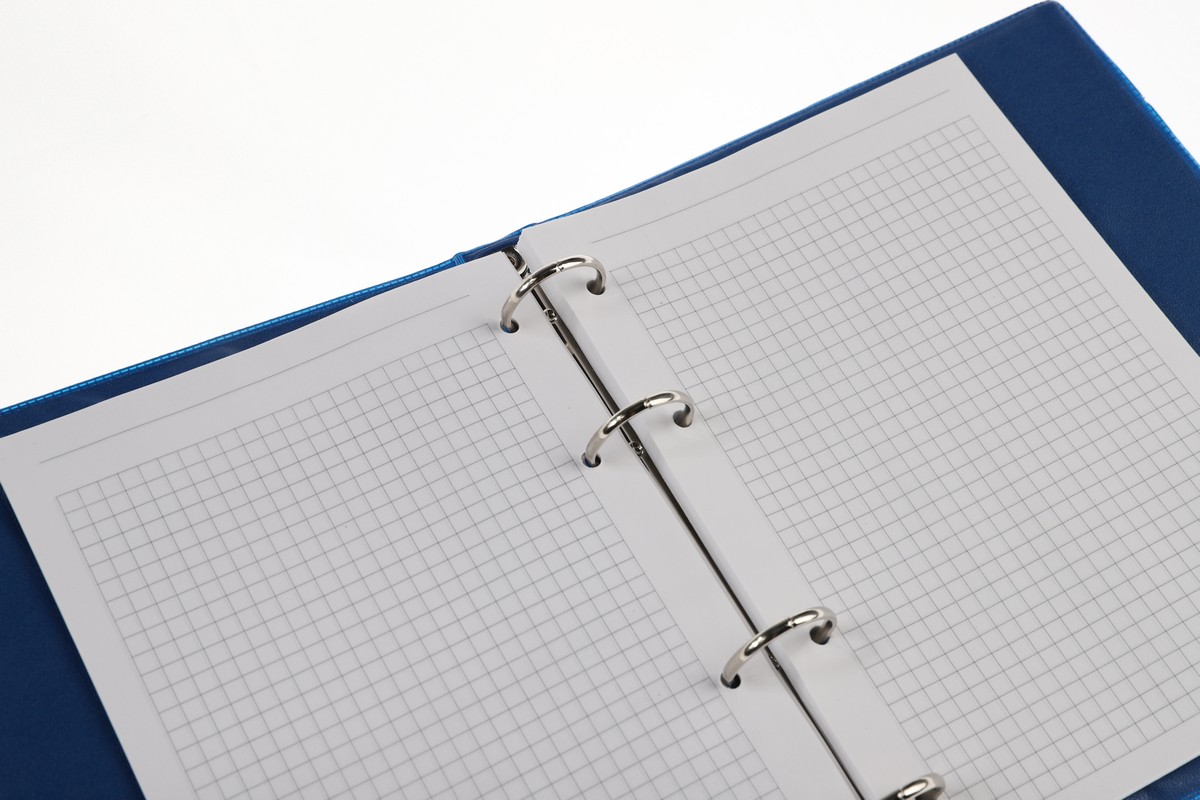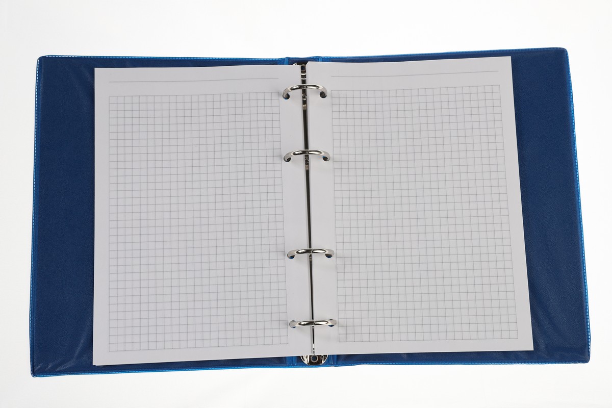 Тетрадь на кольцах представлена в формате А5. Блок — сменный, изготовлен из офсетной бумаги и состоит из 80 листов в клетку.