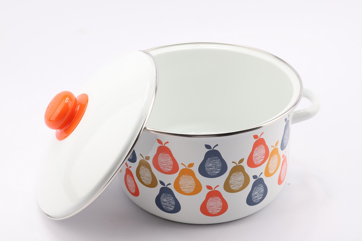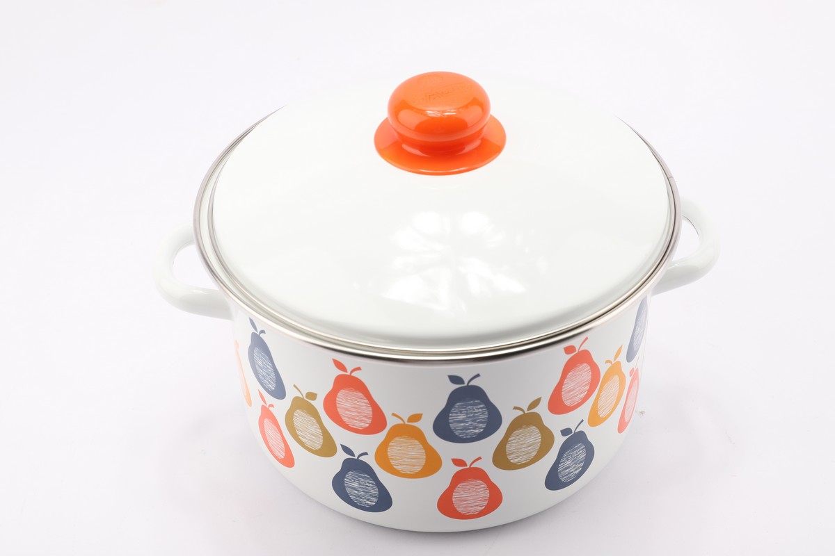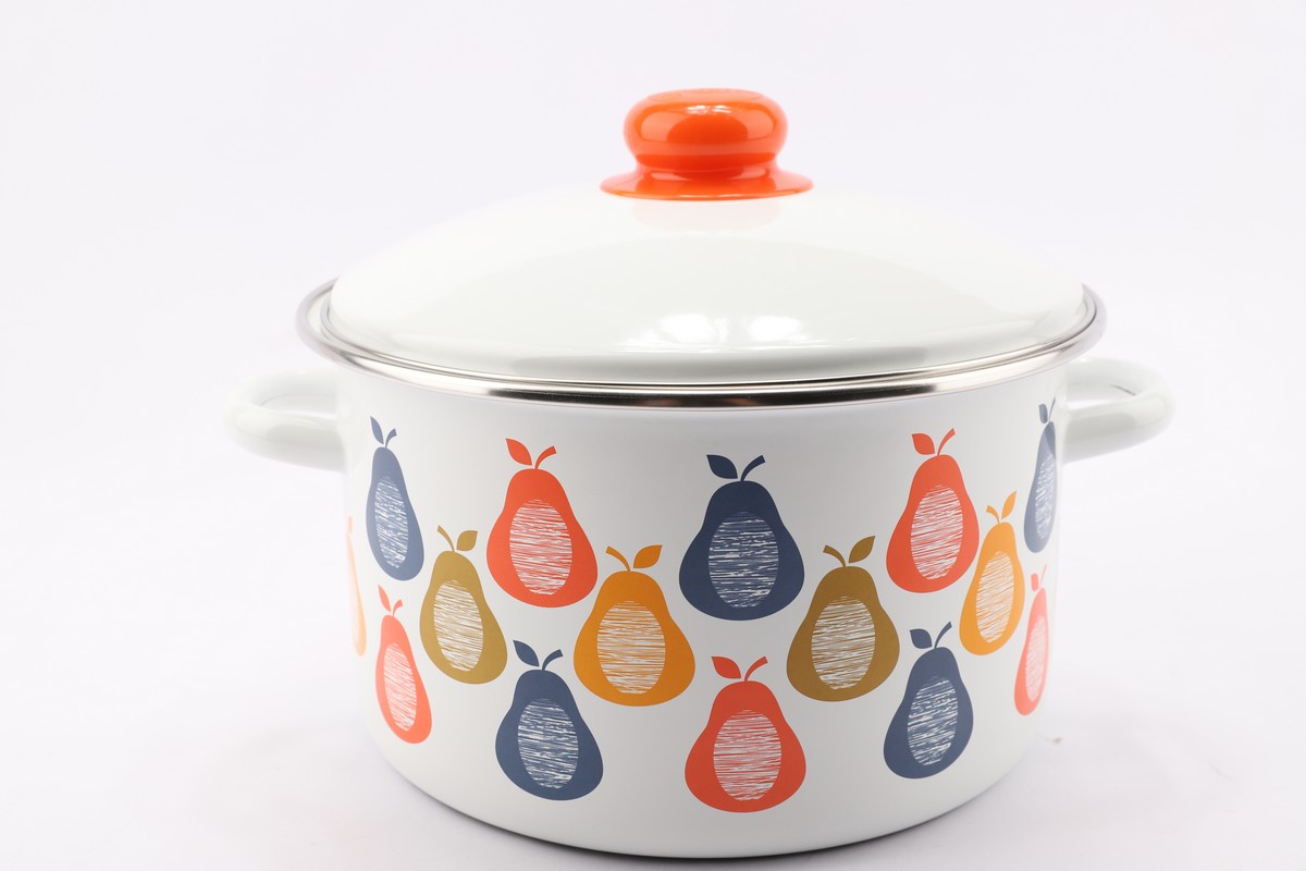 Эмалированная посуда является самой экологичной из существующих. Двухслойное стеклокерамическое покрытие не подвергается окислению и является абсолютно безопасным для организма. В посуде можно не только готовить, но и хранить пищу. Посуда не впитывает запахи блюди не изменяет вкусовые качества приготовленной еды. Эмалированная посуда легко моется. Можно готовить на плитах любого типа. На дне изделий без ободка допускаются «точки» - следы от иголок, на которые изделие ставится и обжигается в печи. На изделиях с ободком таких следов нет, т.к. для обжига они ставятся вверх дном, а борт затем закрывается ободком из нержавеющей стали.