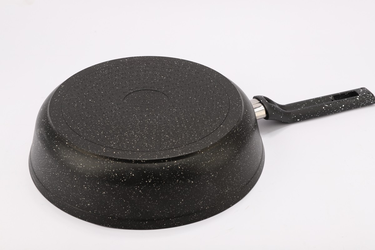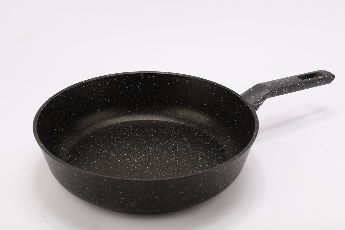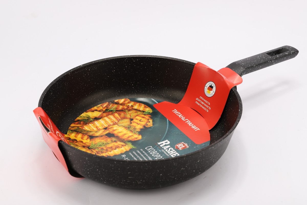 Сковорода а/п литая 28 см с индукционным дном (цвет: чёрный) - Подходит для всех видов плит; - Высота борта h=7,1 см, d=28 см, толщина стенок 4 мм, толщина дна 6 мм; - Бакелитовая ручка; - Внутреннее и вневшнее сверхпрочное, износостойкое, гранитное антипригарное покрытие"ТИТАН&ГРАНИТ".
