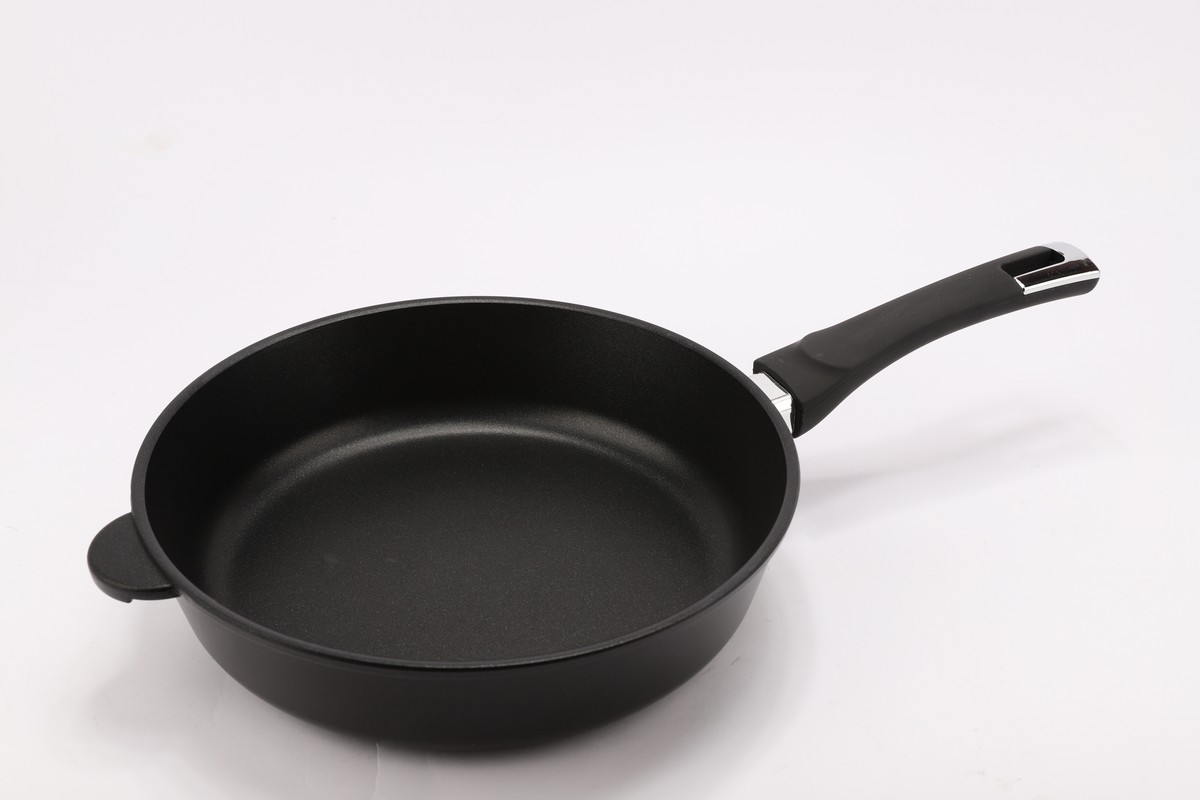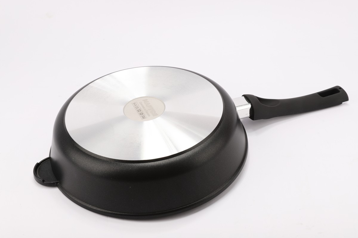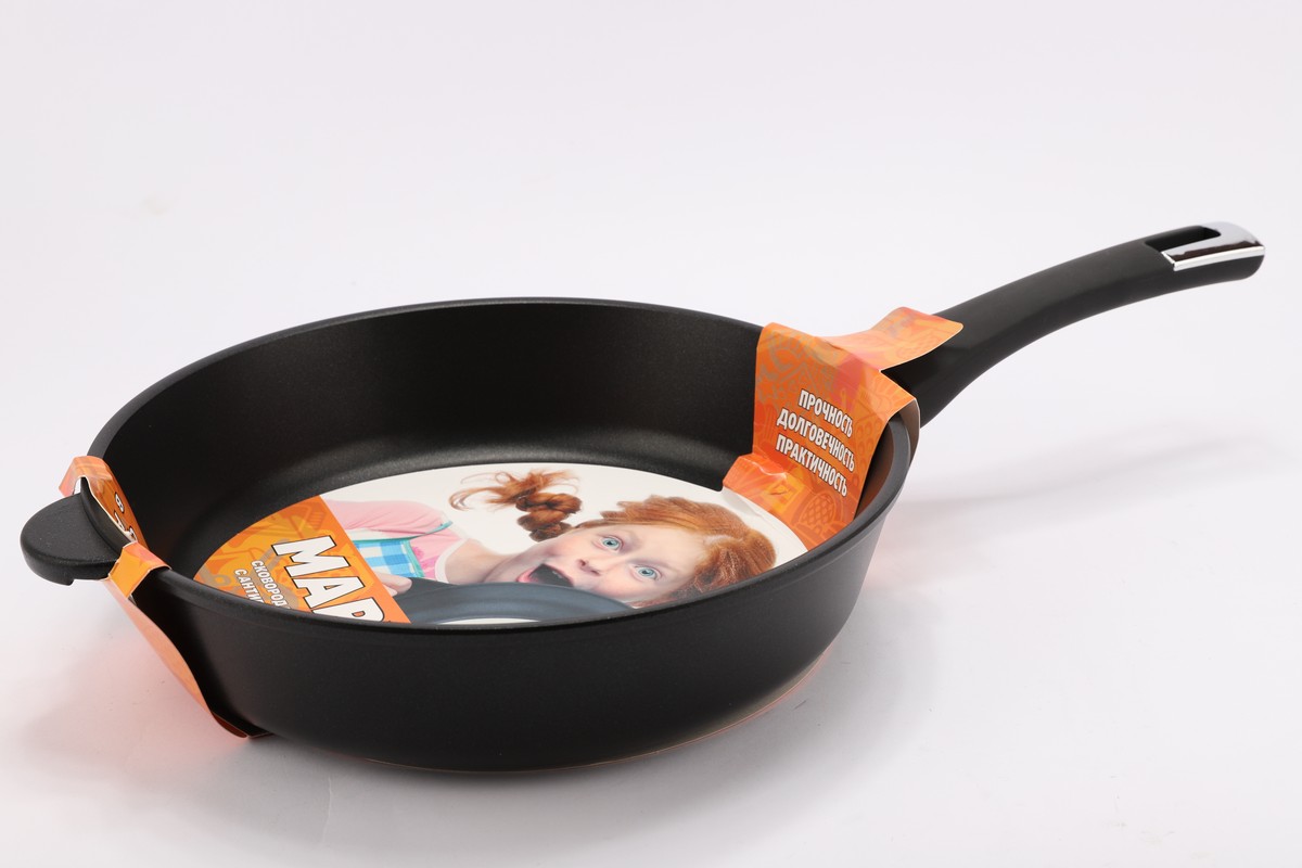 Сковорода а/п литая 28см (цвет:чёрный) Сковорода ГЛУБОКАЯ - ? 28 см, h = 7,1 см, толщина стенок 4 мм, толщина дна 6,5 мм. ВНУТРЕННЕЕ И ВНЕШНЕЕ УПРОЧНЁННОЕ ДВУХСЛОЙНОЕ АНТИПРИГАРНОЕ ПОКРЫТИЕ "GREBLON" С ВЫСОКОКАЧЕСТВЕННЫМИ ТЕРМОСТОЙКИМИ СВЯЗУЮЩИМИ, ручка c покрытием SOFT TOUCH