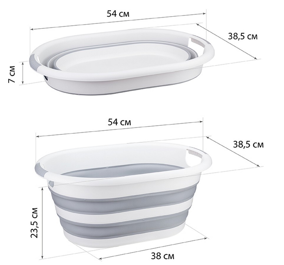 Таз ФЛЕКС складной необходим в быту каждого дома. Отличное применение дома или на даче. Таз ФЛЕКС, можно хранить компактно благодаря складной конструкции. Занимает мало места, также его можно повесить на крючок. Легко моется. Чтобы разложить таз надавите на дно рукой. Другой рукой возьмитесь за ручку и потяните движением на себя. Переверните таз и проделайте то же самое, с другой стороны. в сложенном виде: 54 ? 38,5 ? 7 см в разложенном виде: 54 ? 38,5 ? 23,5 см