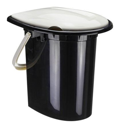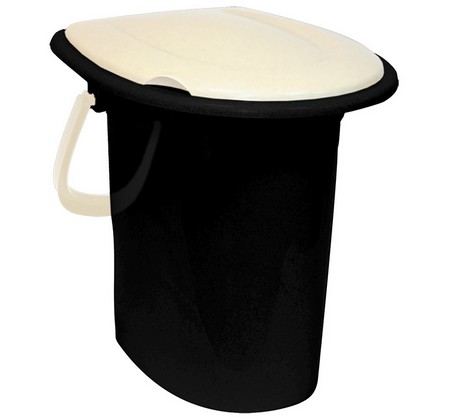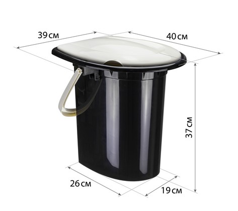 Ведро-туалет изготовлено из пластмассы бежевого цвета. Вехняя часть выполнена в виде сиденья. Ведро оснащено крышкой и ручкой для удобной переноски. 37*39*40 см