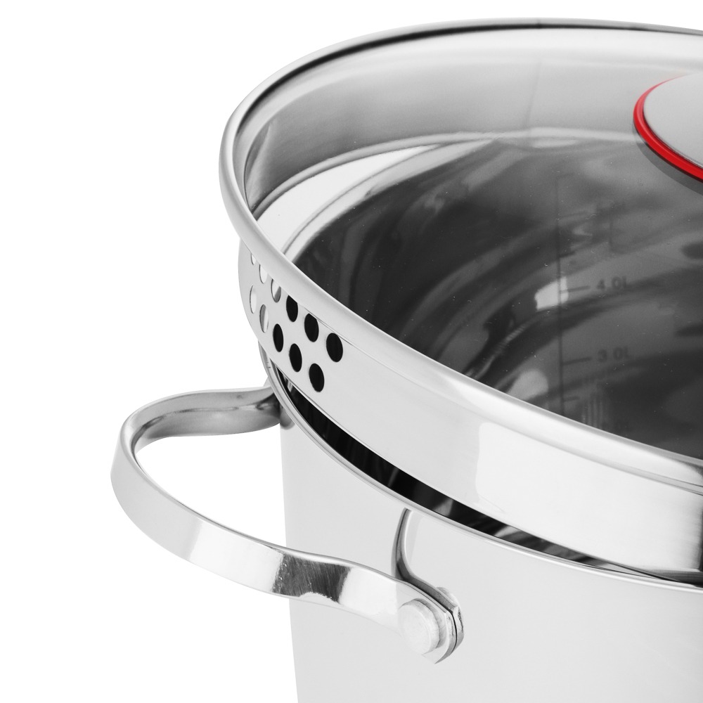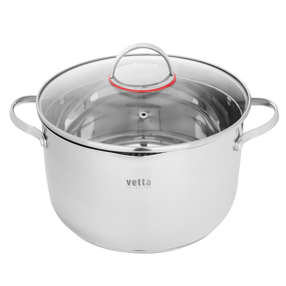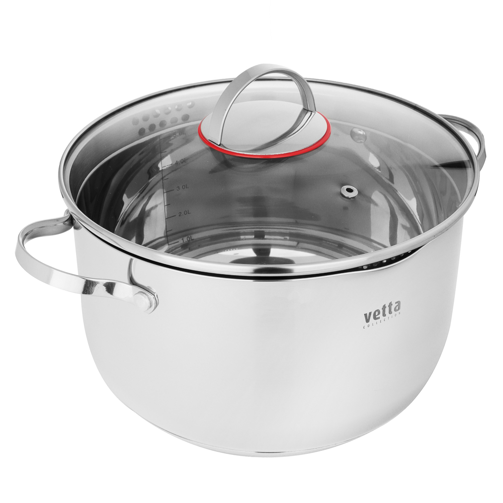 Все еще довольствуетесь приготовлением обедов в старых кастрюлях, где пища медленно варится и пригорает? Обратите внимание на линейку стильной посуды «Бирмингем». Это универсальная посуда из нержавеющей стали, созданная по последним технологиям. Кастрюли оснащены капсульным дном. Вода закипает быстрее. Ингредиенты не подгорают. Пища готовится равномерно и качественно. Подходит для длительного хранения в холодильнике. Размер 24х14,5 см, объем 6,3 л.6 причин купить кастрюлю из нержавеющей стали VETTA "Бирмингем":• многослойное капсульное дно — быстрее готовит, экономит энергию,• крышка из жаропрочного стекла со сливом, плюс отверстие для отвода пара,• можно ставить в холодильник,• мерная шкала на внутренней стенке кастрюли,• подходит для всех типов плит, включая индукцио