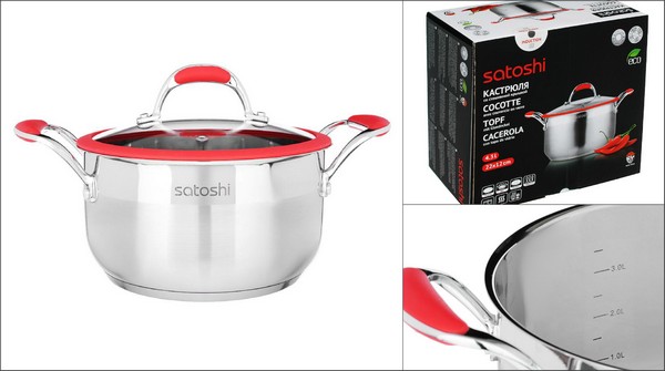 Посуда из нержавеющей стали, созданная по последним технологиям. Кастрюли оснащены капсульным дном. Вода закипает быстрее. Ингредиенты не подгорают. Пища готовится равномерно и качественно. Подходит для длительного хранения в холодильнике. Кастрюля имеют крышку с силиконовым ободом, а ручки -силиконовые вставки.