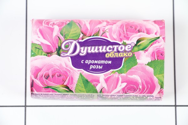 Мыло туалетное Душистое облако с ароматом розы 90 г Мыло 'Душистое облако' с ароматом розы наиболее популярно среди покупательниц. Оно изготовлено из высококачественного сырья и не имеет посторонних запахов. Нежный букет розовых лепестков настраивает на мирный лад и успокаивает после тяжёлого дня. Мыло легко увлажняет и не раздражает даже самые чувствительные участки тела.