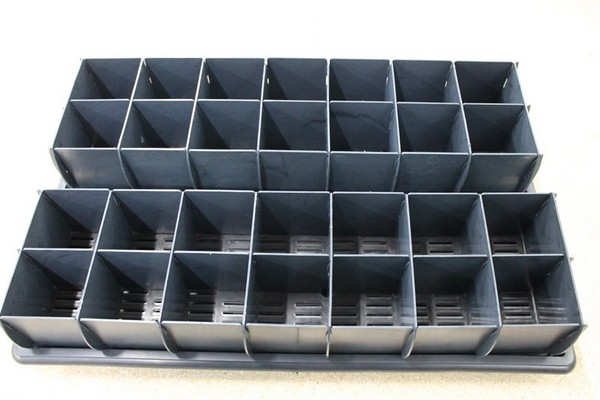 Набор для рассады на 28 мест. Разборный набор для рассады на 28 мест. Не занимает много места при хранении и легко собирается. Можно учеличить величину ячейки, если не ставить все поперечные перегородки. Комплект состоит из двух поддонов и набора стенок и перерегородок. Габаритные размеры одного рассадника (на 14 мест) 590х185х110мм., Материал — пластик.