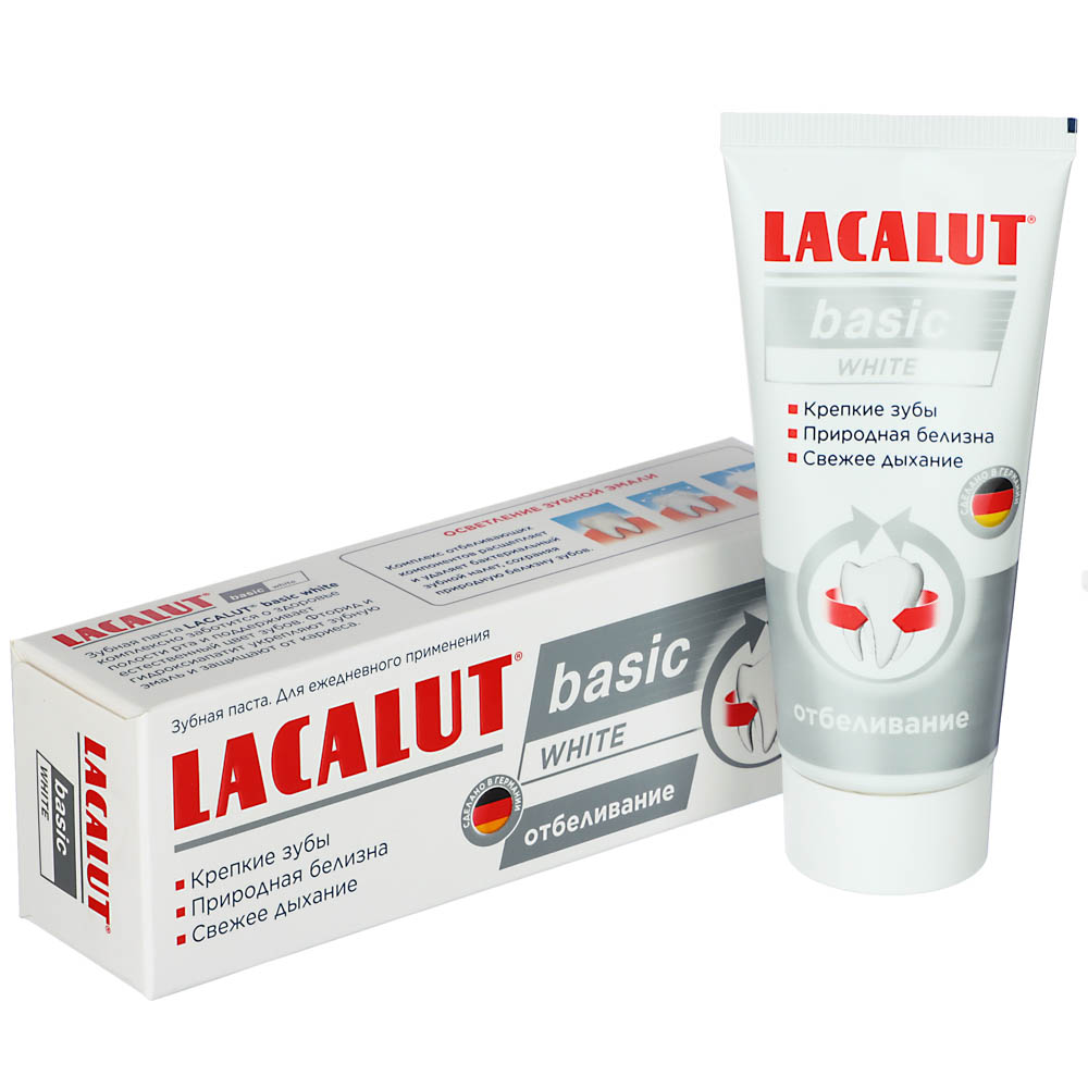 В состав зубной пасты LACALUT white входят специальные микроскопические частицы – абразивы, которые удаляют с поверхности зубов бактериальный налет и нежно полируют эмаль, чтобы она была гладкой и блестящей. У пасты LACALUT white дорогостоящий абразив с регулируемой сферической огранкой, он не царапает и не травмирует эмаль. Размер и форма абразивных частиц обеспечивают сверхпродуктивное и бережное отбеливание. Дополнительно LACALUT white содержит фториды, укрепляющие эмаль зубов и предупреждающие их повышенную чувствительность, а также пирофосфаты – специальные соединения, препятствующие образованию зубного камня.