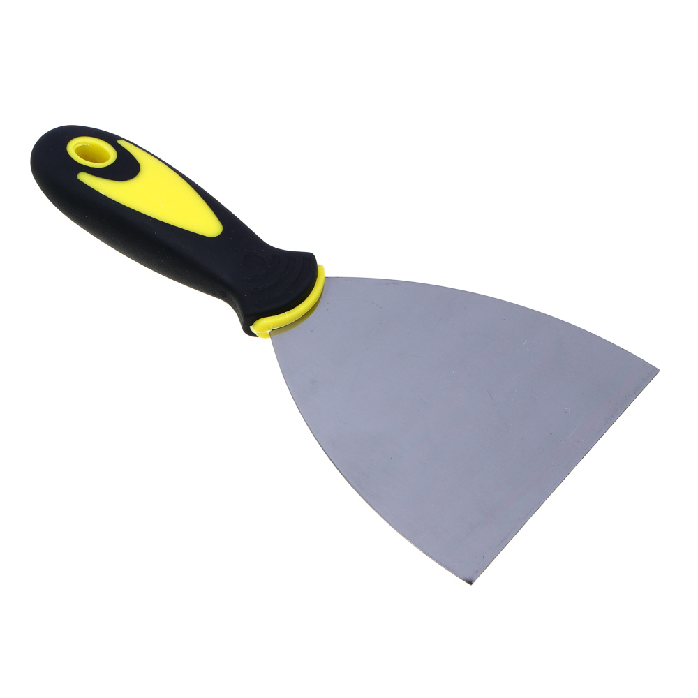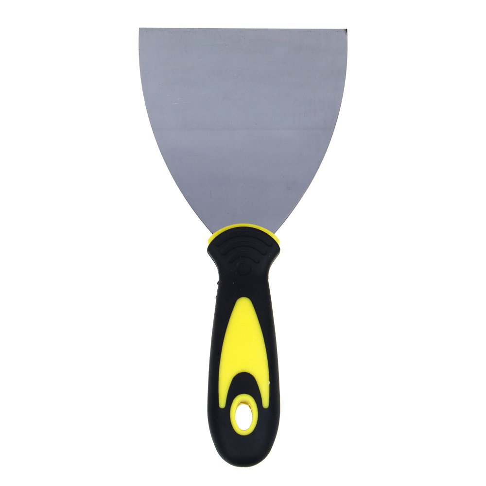 Фасадный шпатель с двухкомпонентной рукояткой предназначен для отделки поверхностей внутри и снаружи помещений. Используется для нанесения и выравнивания по поверхностям штукатурки, шпатлевки и других строительных растворов, заделки трещин и швов. Фасадный шпатель оснащен эргономичной пластмассовой ручкой, с рифлением, которая обеспечивает надежный хват инструмента при использовании, в том числе, в грубых строительных перчатках.