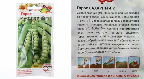 Среднепоздний (49-60 дней от полных всходов до начала сбора бобов) сахарный сорт. Растение длиной 70-80 см. Боб прямой, с заостренной верхушкой, без пергаментного слоя, длинный (7-9 см). В каждом бобе завязывается 7-9 горошин. Стенки бобов толстые, мясистые, на вкус сладкие, без наличия жестких тканей. Рекомендуется для потребления недозрелых бобов в свежем виде. Десертные лопатки с сочными семенами это ценный диетический продукт богатый белками, сахарами, крахмалом, витаминами и каротином. Урожайность 0,7-1,2 кг/м2. Посев производят ранней весной на солнечной стороне участка на глубину 4-6 см. Схема посева: 15x30 см. Растения нуждаются в подвязке.