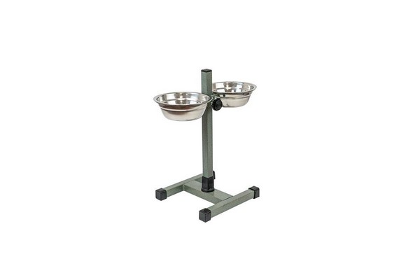 Кормушка регулируемая ТМ ЧИП. Цвет стойки и держателей "хамелеон". Высота изделия 40см, объём мисок: 2шт. по 700 мл. Поставлется в разобранном виде в индивидуальной коробке.