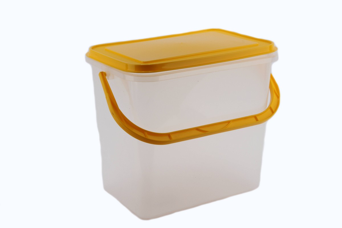 Прямоугольный пластиковый контейнер с крышкой рассчитан на хранение сыпучих продуктов, солений и других продуктов питания. 34х29х23 см