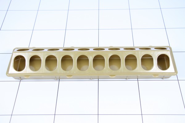 Небольшая кормушка для перепелов изготовлена из качественного пластика. Кормушка вмещает корм весом до 2 кг. Длина 0,18 м. Ширина 0,075 м. Высота 0,17 м.