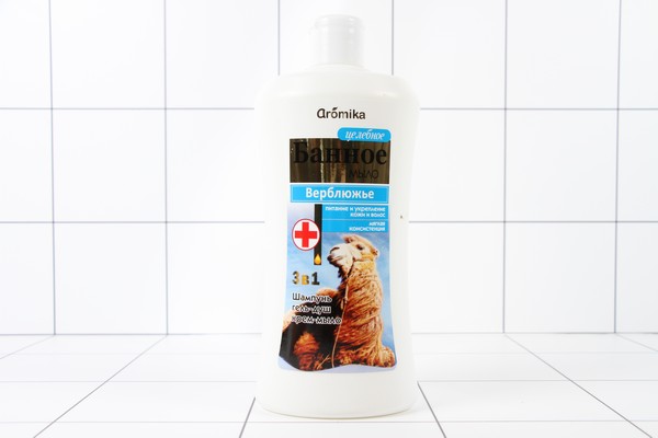 Крем мыло банное, гель для душа + шамнунь 3 в 1 «Верблюжье». Целебные и косметические свойства верблюжьего молока известны несколько тысяч лет. Женщины Ближнего Востока всегда использовали верблюжье молоко и сметану как маску, эффективно предохраняющую нежную кожу лица от ярких лучей солнца и обветривания, а также для борьбы с кожными заболеваниями. Верблюжье молоко крайне богато различными полезными веществами: протеинами, увлажняющими, питающими и омолаживающими кожу, витаминами С, А, В1, В2 и В12, иммуноглобулином и природным каротином, различными минералами. Природные антибиотики и другие вещества, содержащиеся в нем, обусловили высокую эффективность препаратов на его основе в борьбе с псориазом, себореей, дерматитом.