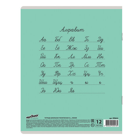 Тетрадь 12 л. ЮНЛАНДИЯ КЛАССИЧЕСКАЯ, линия, обложка картон, ЗЕЛЕНАЯ, 105644