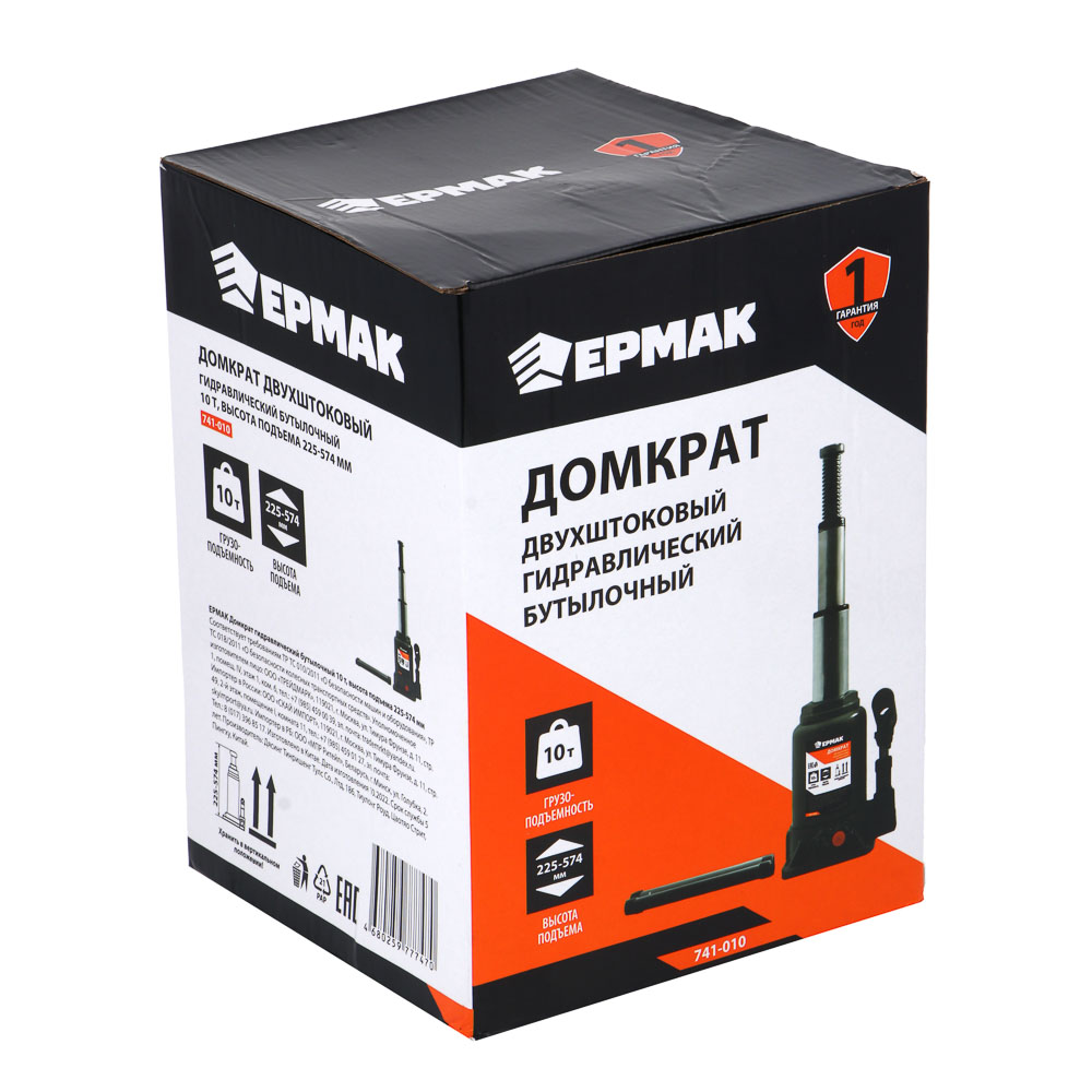 Мощнейший двухштоковый домкрат ЕРМАК грузоподъемностью 10 тонн – настоящий профессионал среди подъемного оборудования! Этот универсальный инструмент создан для решения самых сложных задач в строительстве и автосервисе. Впечатляющий рабочий диапазон от 225 до 574 мм делает домкрат незаменимым помощником как при работе с легковыми автомобилями, так и с тяжелой техникой. Усиленная металлическая конструкция и двухштоковая система обеспечивают непревзойденную устойчивость и плавность хода при подъеме даже самых тяжелых грузов. Надежная гидравлическая система гарантирует стабильную работу и точный контроль над процессом подъема. Эргономичная рукоять управления позволяет легко и безопасно манипулировать устройством, а широкий опорный элемент обеспечивает максимальную устойчивость во время работы. Специальный защитный клапан предотвращает перегрузку и продлевает срок службы инструмента.