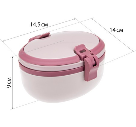 Габариты: 145x140x90 мм Обтекаемые формы без углов, яркий дизайн, безопасная пластмасса. Состоит из двух отделений, которые просто собрать и застегнуть на защёлки. У контейнера есть ручки для переноски, которые легко складываются. Бутерброд, нарезанные фрукты, ягоды, печенье и многое другое можно положить в контейнеры. Они сохранят свежесть продуктов, не смешивая их аромат.
