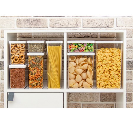 Материал: полистирол Габариты: 160x100x70 мм Предназначены для хранения различных сыпучих продуктов: сахара, кофе, муки, соли, круп, макаронных изделий, печенье и многого другого. Крышка выполнена по би-компонентной технологии. Таким образом внутренний край крышки сделан из эластомера. Вот почему банки герметичные, не пропускают влагу и запахи. Изделия имеют прозрачный корпус и крышку. Поэтому всегда видно содержимое и его количество, не важно где стоят ёмкости, в выдвижном или навесном ящике.
