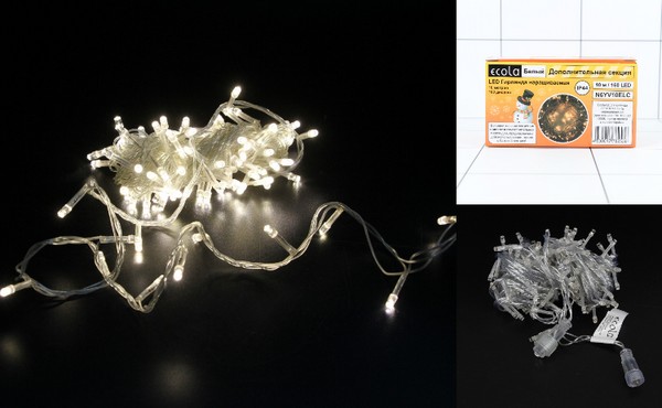 Купите товар «797443 Гирлянда-нить, наращив.(доп.секция) 160LED 4К, 10м,прозр.провод с коннект. 220V IP44» по оптовой цене с доставкой или самовывозом. В Екатеринбурге и других городах.