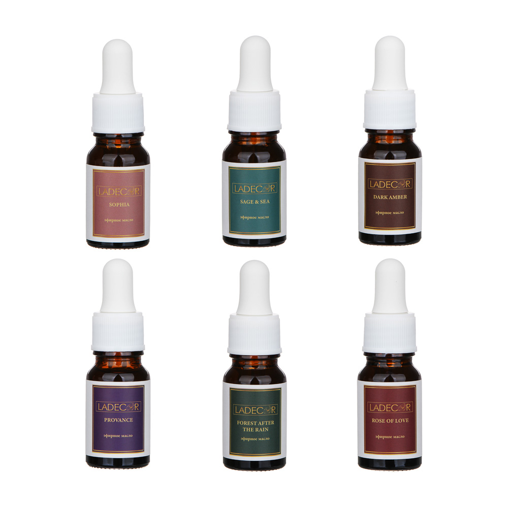 Аромамасло LADECOR объемом 10 мл – это концентрированная смесь из натуральных эфирных масел, объединенных в роскошный благоухающий букет. Масло с дозатором-пипеткой можно использовать в аромалампе, диффузоре, смешивать с базовыми маслами для массажа, расслабляющих ванн или обогащения косметических средств, а также для изготовления ароматических свечей или бомбочек для ванн в домашних условиях. Ароматическая композиция благотворно действует на эмоциональную сферу, позволяя расслабиться и снять напряжение. 6 ароматов в ассортименте.